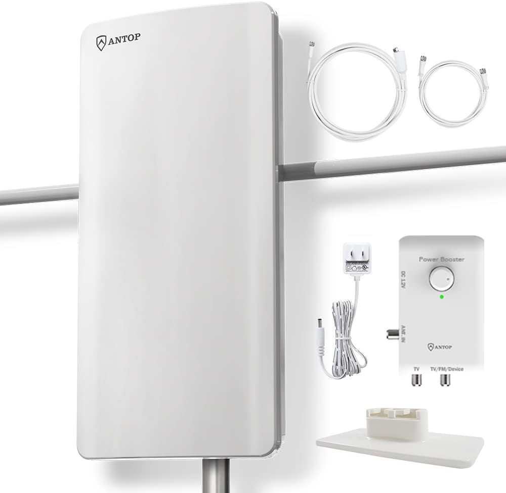 Smart Boost System with Built-in Adjustment Dial Allows for an easier connection and delivers the correct balance from 0 to 85 miles reception range with just a turn of the dial. Adjustable amplifier strength and antenna s reception power based on your location s specific needs. Dual Connectivity Allows to connect to a second device (a second TV, FM stereo or any OTA-ready streaming device or projector) simultaneously via the secondary output on the Smart Boost System. Makes a great complement to a media streamer. Creative Bar Design with FM Antenna Integrated Allows you to listen to your favorite radio stations. Aesthetically pleasing sculpture-like design with multiple positioning of table standing and wall mounting matches a wide range of home interior styles. Shields Against Interference Build in 4G LTE Filter, blocks 3G and 4G signals for clear smooth pictures and stable channel reception. Bringing you a no-noise and no-flash TV viewing experience and into a real family paradise. Save Bino monthly fee and no need to subscribe for watching your favorite local news, sports and TV shows! ANTOP AT-800SBS HDTV Antenna receives free local, over-the-air digital TV signals from networks like ABC, CBS, NBC, PBS, Fox, Univision and others. Compatible with TV converter boxes and HD televisions/4K Ultra High Definition (4K UHD) TVs.