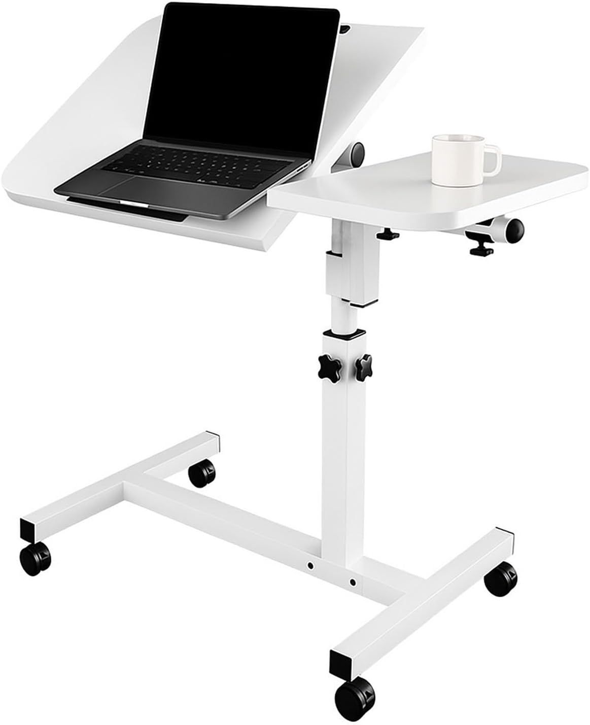 Adjustable Folding Board for Versatile Use This mobile bedside table features a built-in folding board that adjusts from 0 to 90 , making it perfect for reading, writing, sketching, or using your laptop at a comfortable angle. Equipped with non-slip pads to securely hold devices in place and prevent slipping during use. Smooth Gas Spring Height Adjustment Easily adjust the height of the rolling computer desk from 23.62" to 35.43" with a one-button lift system. Powered by pneumatic gas spring technology, the transition is fast, smooth, and effortless perfect for switching between sitting and standing positions throughout the day. Sturdy & Built to Last Designed with a strong frame and durable materials, this sit-stand desk offers reliable support for everyday use. The smooth, wear-resistant desktop not only withstands frequent use but also brings a sleek, modern look to any workspace. Ergonomic Sit-Stand Design Switching between sitting and standing helps reduce fatigue, improve posture, and boost productivity. This adjustable desk supports a healthier work routine by relieving pressure on your back and neck giving you a more comfortable and active workspace at home. Easy to Instal We provide you with all the necessary instructions and components to easily assemble your laptop stand.