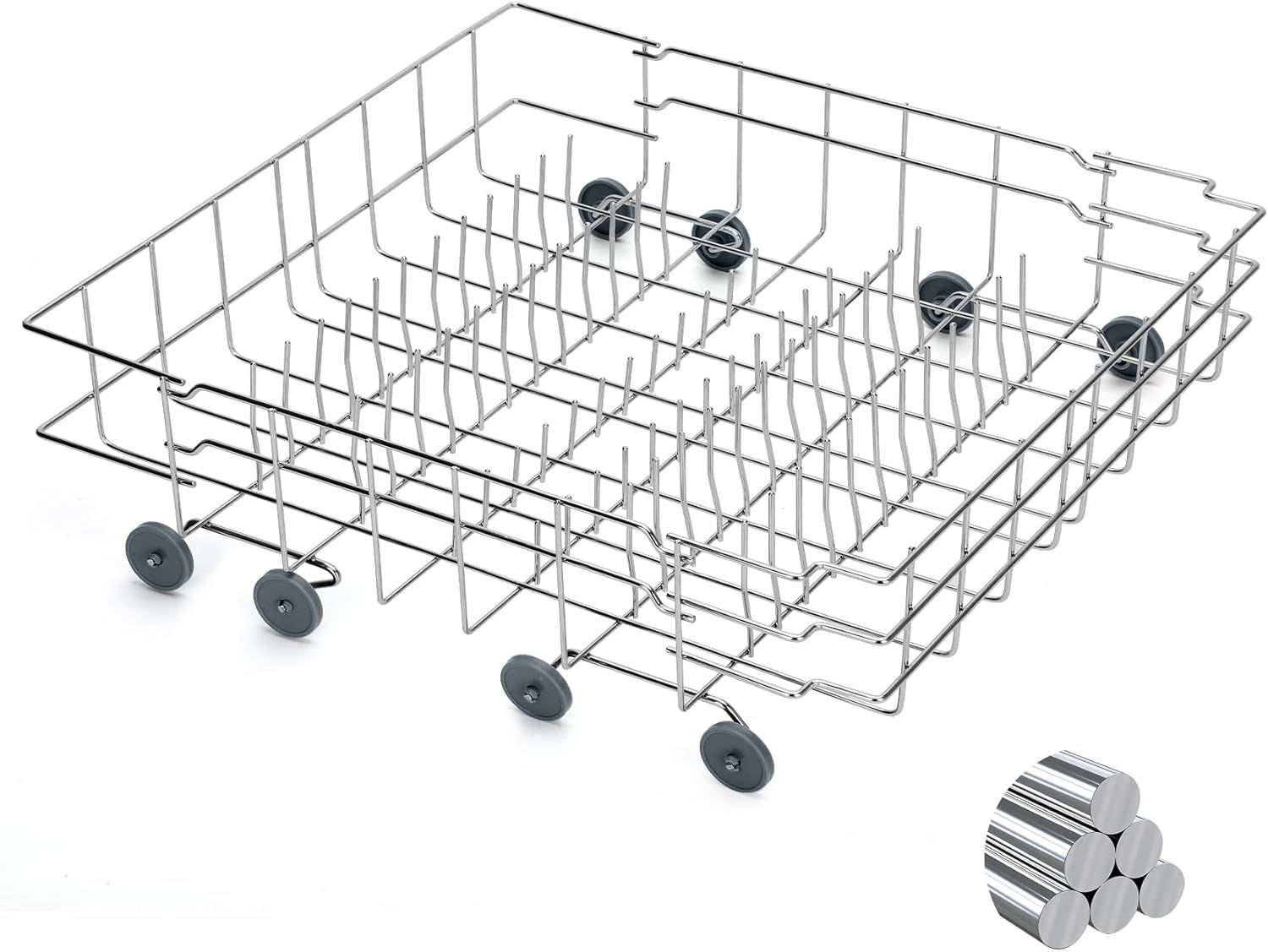 Stainless Steel 808602302: Dishwasher lower dishrack assembly compatible with rigidaire&kenmore&crosley dishwasher rack. 808602302 dishwasher rack replaces part numbers: 154432602, 154866702, 154207803, 154320902, 154321002. Includes: 1 x 808602302 Dishwasher basket, 10 x 154174501 Dishwasher Wheels Bracket. Compatible Dishwasher Models: Stainless Steel 2808602302 Dishwasher Lower Dishrack Assembly compatible with kenmore dishwasher 58716193400, 58716254400, 58716252401, 58714183400. Compatible with frigidaire dishwasher FDB1051REM2, FDBB540DS0. Compatible with Crosley dishwasher CDBE566AB1. Quality Assurance: Our 2808602302 dishwashers have excellent heat and wear resistance. Full body stainless steel bracket, sturdy and not easily deformed. Smooth and beautiful surface, will not scratch tableware. Wear resistant and durable, not easily corroded or rusted. Quality inspection before leaving the factory to ensure the quality of each product. Easy to Install: This dishrack (part number 808602302) is for dishwashers. Dishrack 808602302 holds the dishes in place during the dishwashing cycle. No tools are needed, just clamp the wheel onto the bracket and replace the old dishwasher basket. Easy DIY, you can make your dishwasher rack look new, better protect your cutlery from scratches.