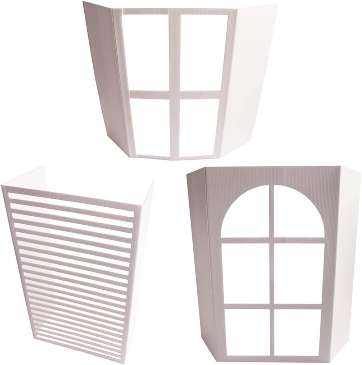 The 3 pack includes one of each medium frame: Arched Window Frame, Traditional Window Frame, and Window Blinds The frames measure 15 inches x 24-1/4 inches with the flaps closed and 30 x 24-1/4 inches with the flaps open. These frames are physical and lightweight self standing frames, they are not roll-ups Great for food, product, beauty, lifestyle, and portrait photography Works best with artificial light so you can control the light position and shadows from the window Made for novice photographers to professionals, these frames are great for anyone looking for a quick set up and take down.