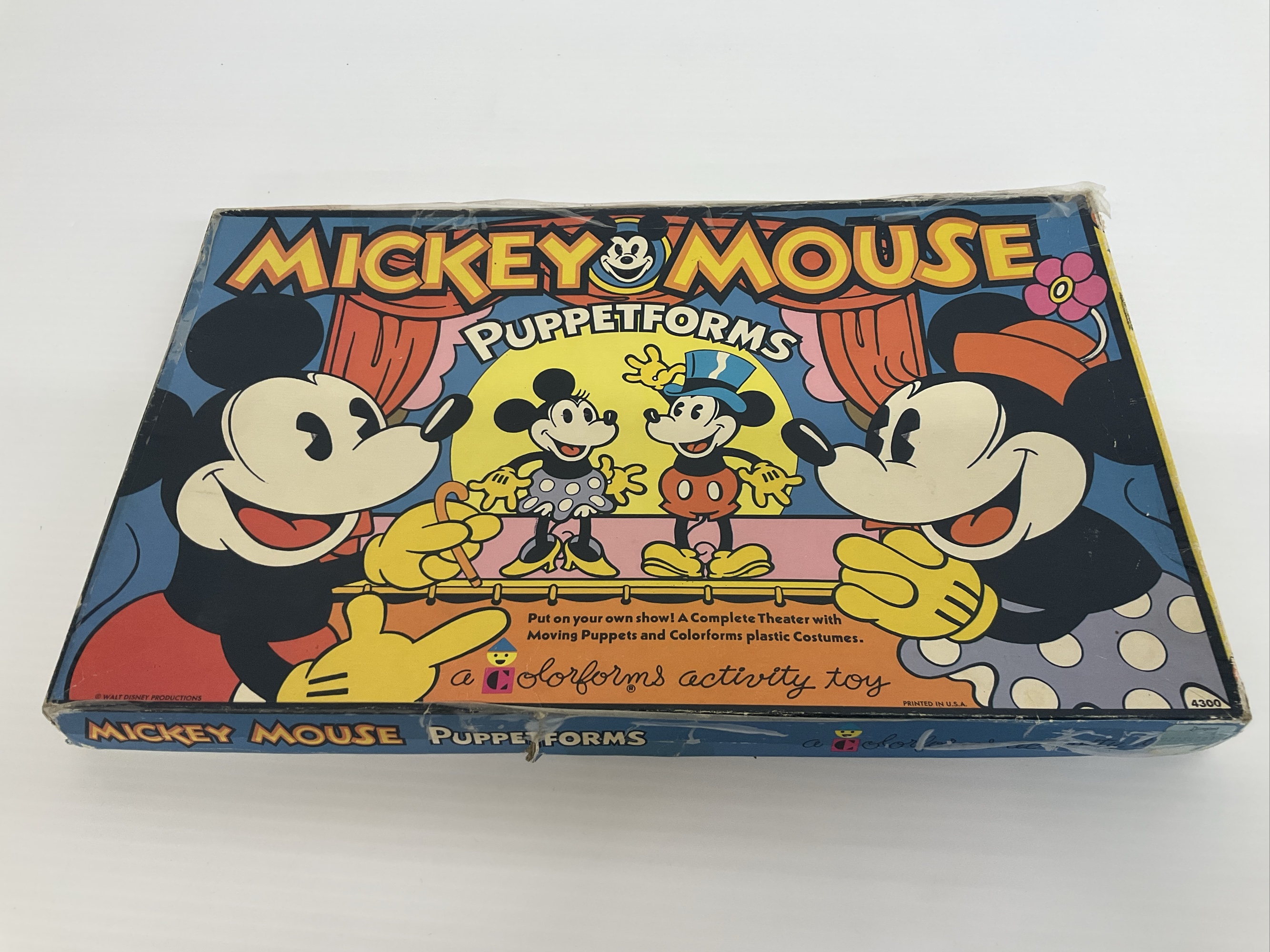 Mickey Mouse Puppetforms Colorforms Activity Toy. A complete theatre with moving puppets and colorforms plastic costumes.