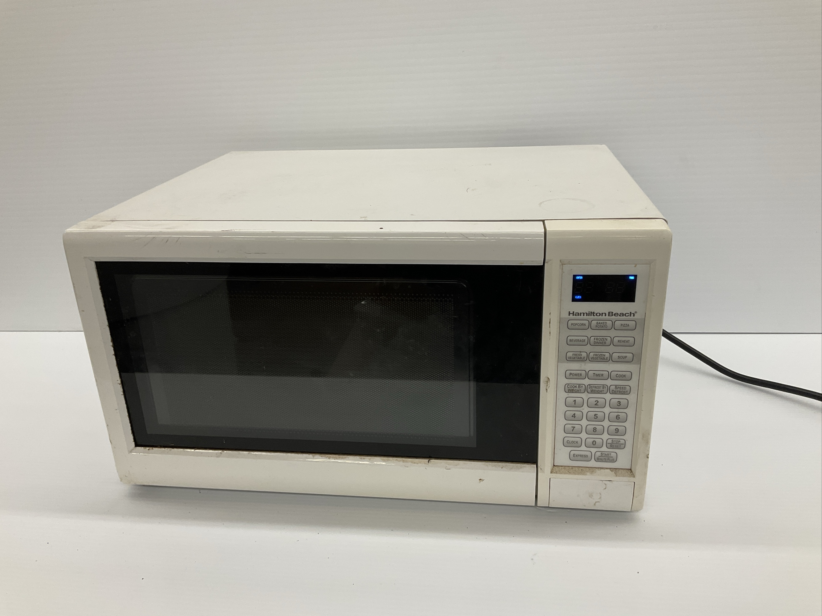 Hamilton Beach microwave oven, Model HB-P10034AP-M4W. 1000 Watts, 120V 60Hz, Single Phase 1450W output. 11.5 x 21.25 x 17.5 in.