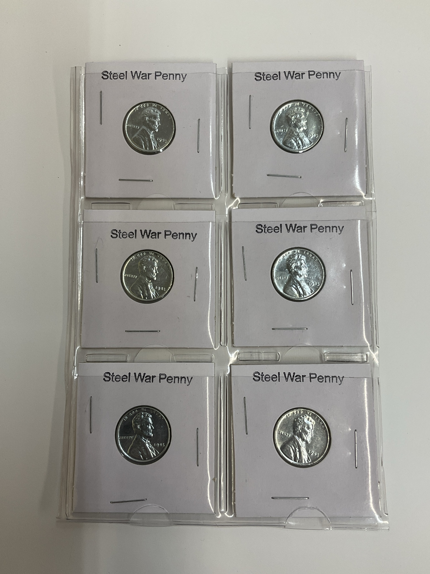 This lot features six Steel War Pennies, all Lincoln Cents from 1943. A great addition to any coin collection.