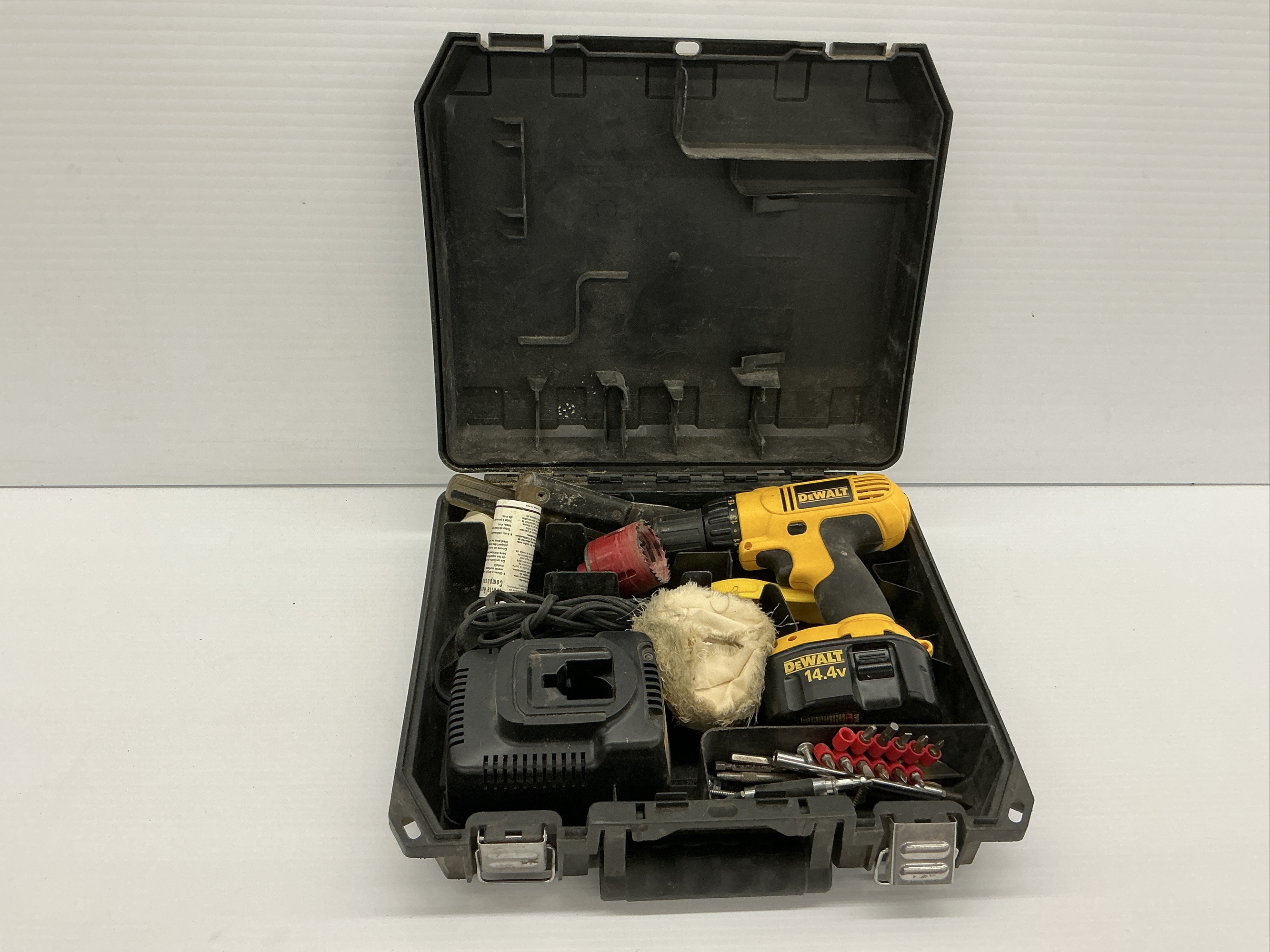 DeWalt 14.4V Cordless Drill with Battery, Charger, Case and Accessories, works