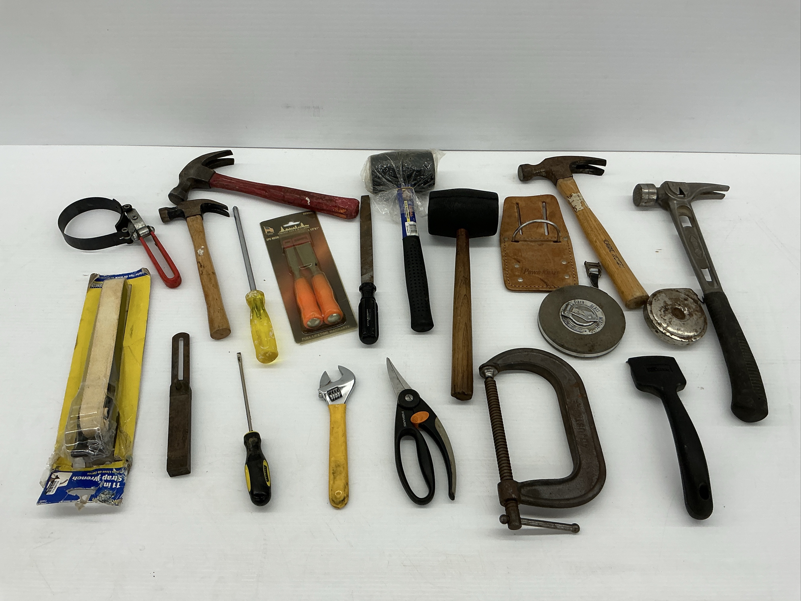 Mixed Lot of Hand Tools Including Hammers, Screwdrivers, and More