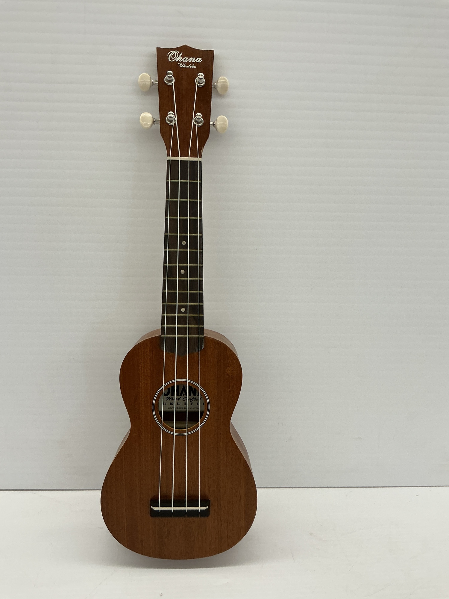 This listing is for an Ohana SK-10 Ukulele, which includes a fitted case. This instrument is well-suited for both beginners and experienced players alike.