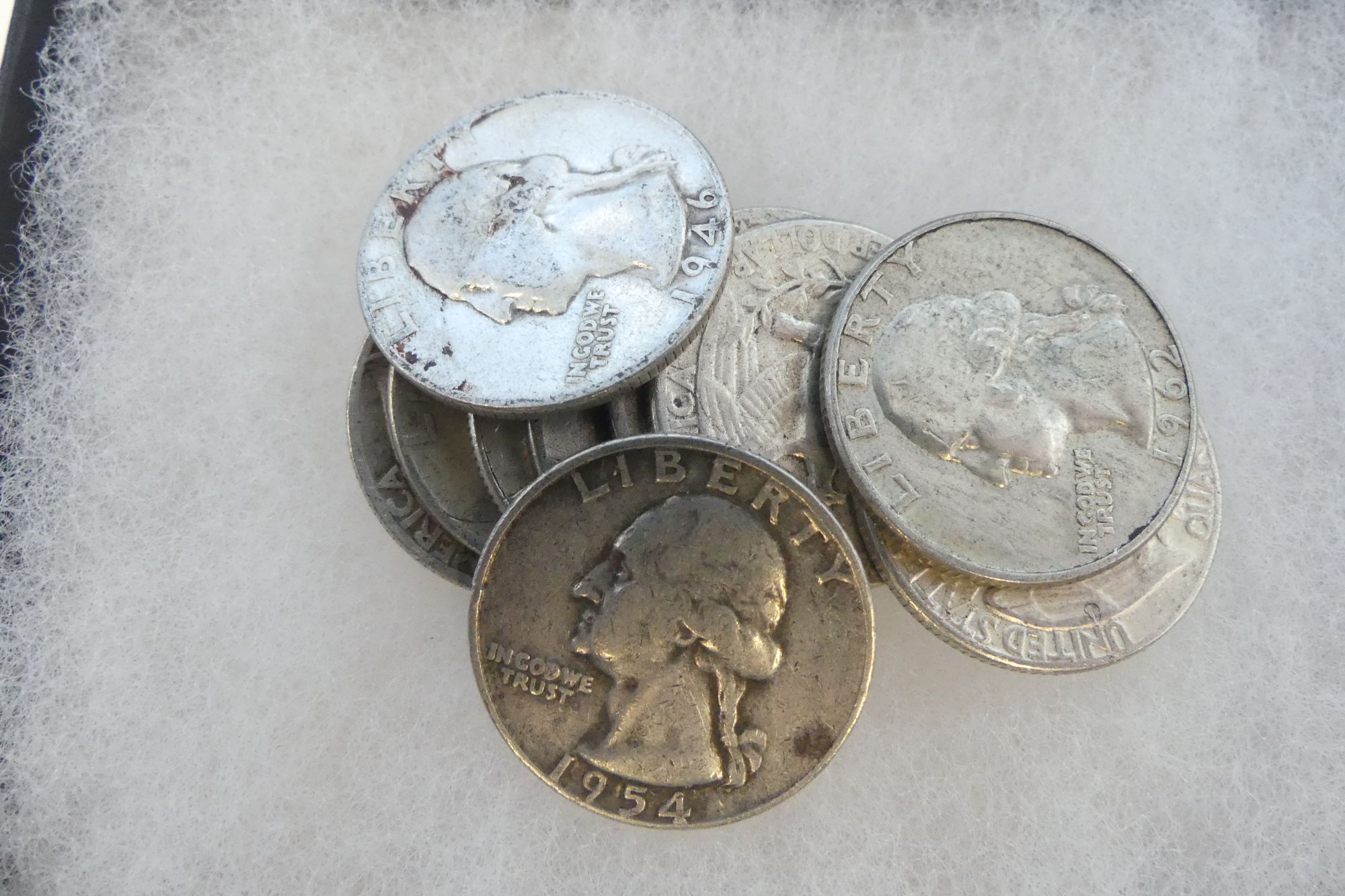 A collection of United States silver Washington quarters. This lot includes coins dated 1946, 1954 and 1962.