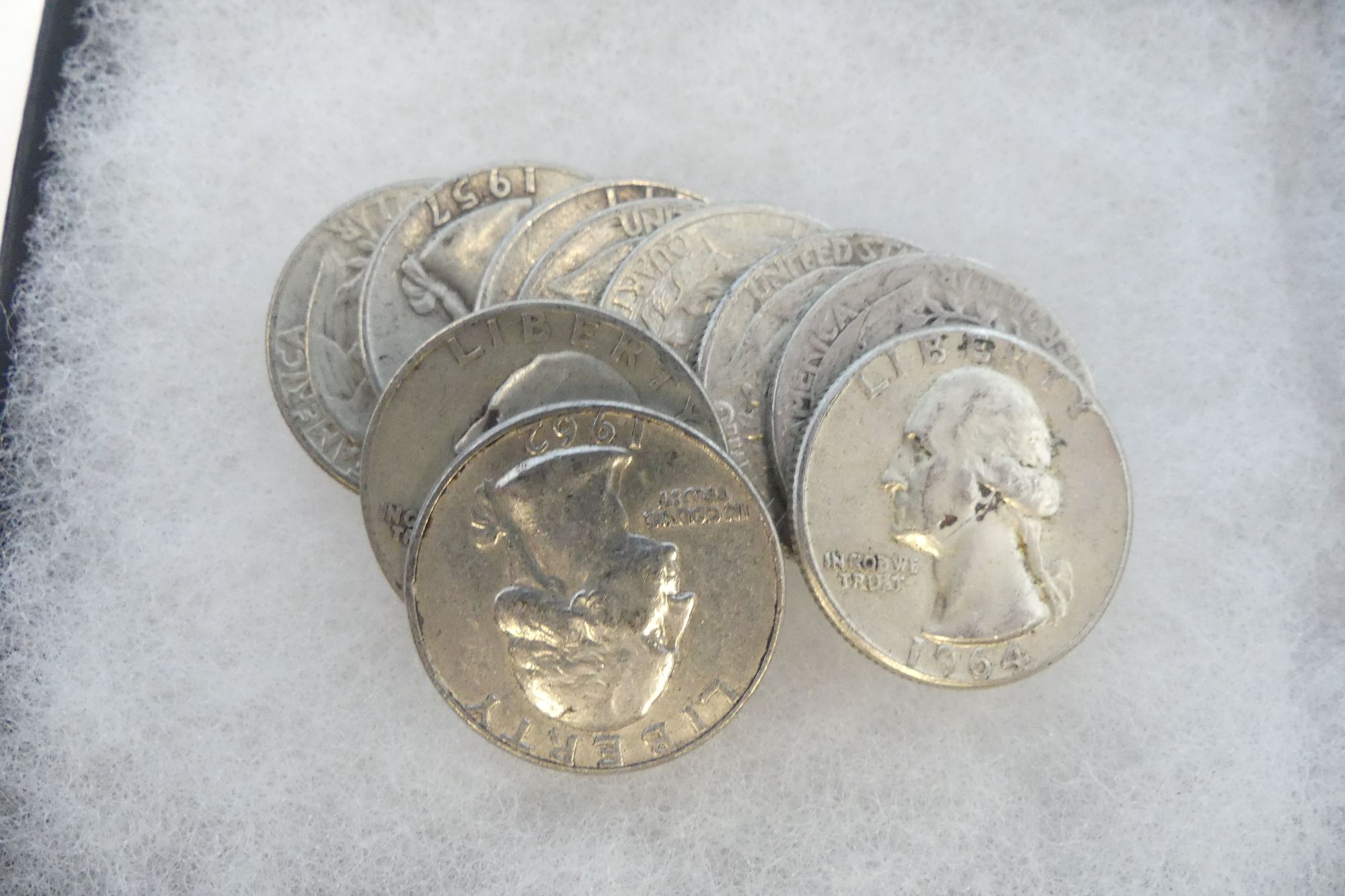 Mixed Lot of 10 Silver Washington Quarters -pre-1965