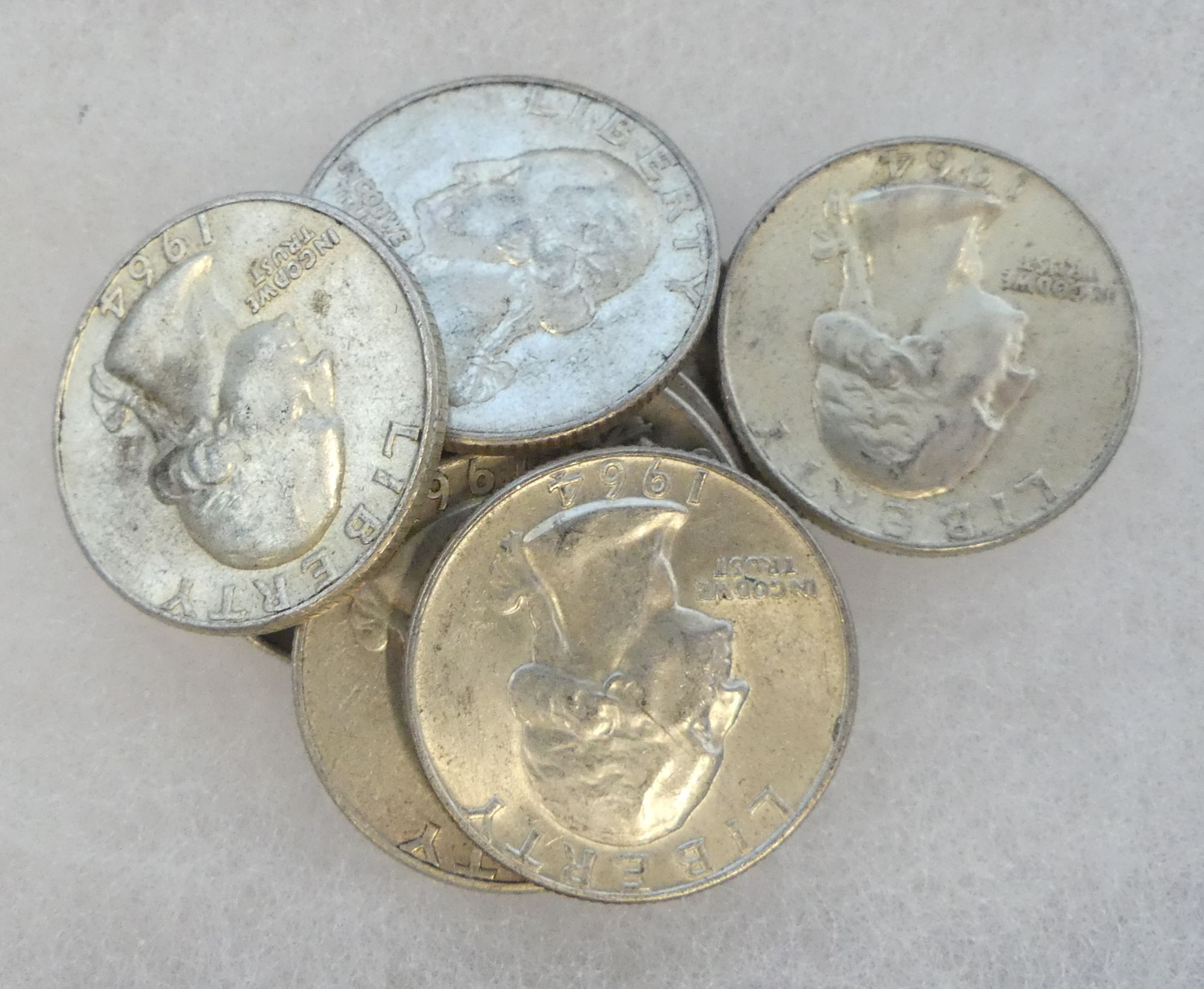 Mixed Lot of 10 Silver Washington Quarters -pre-1965