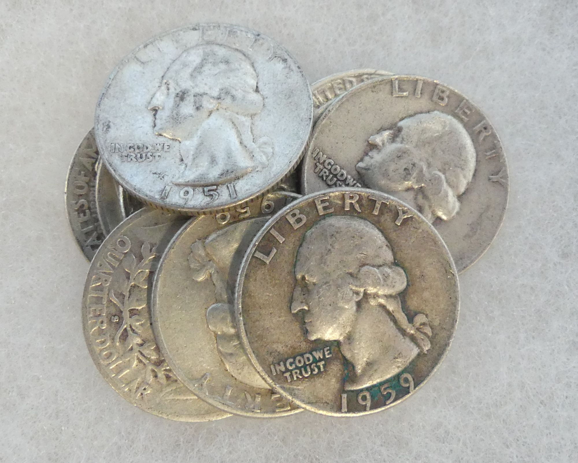 Mixed Lot of 10 Silver Washington Quarters -pre-1965
