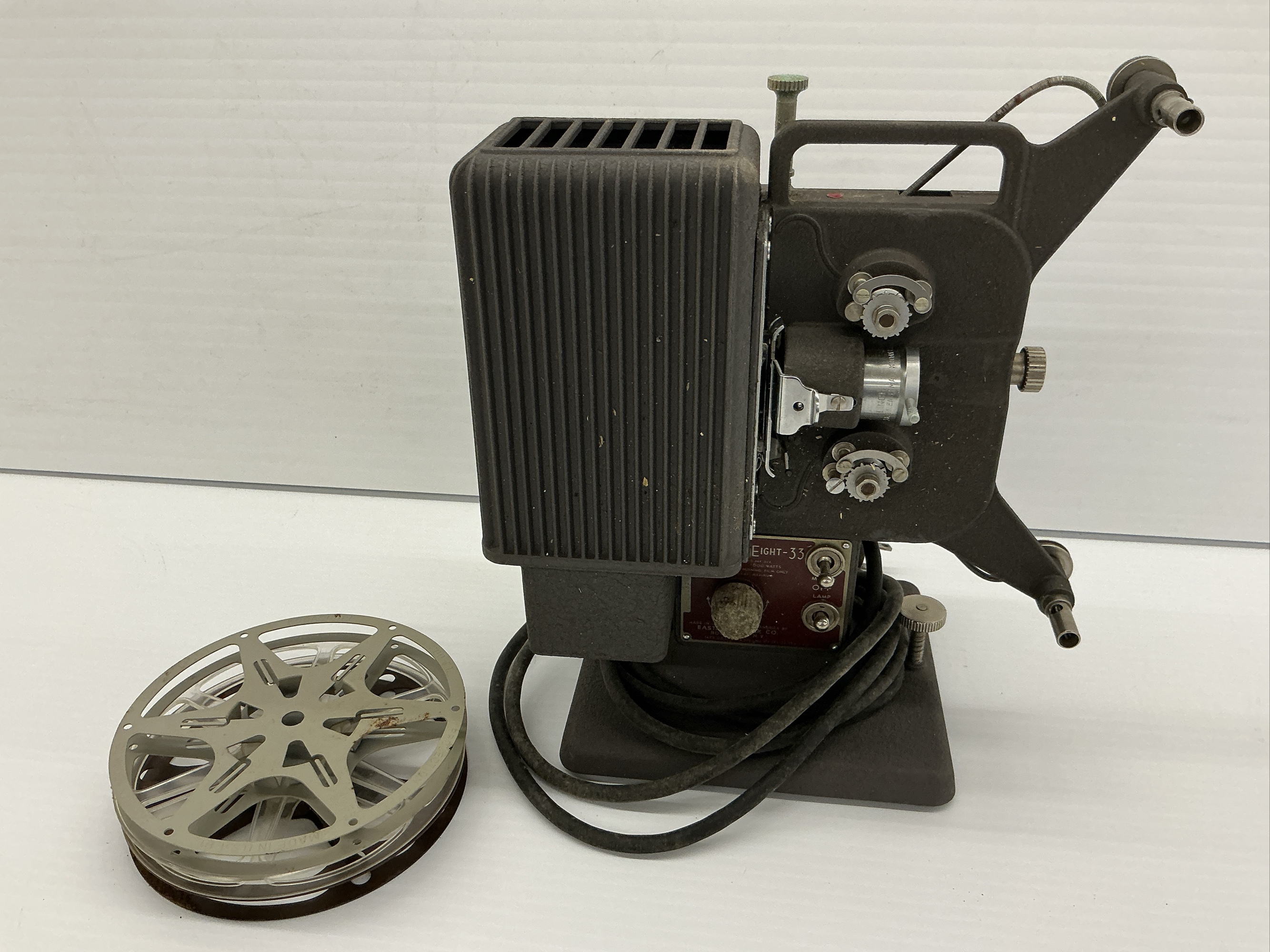 Vintage Kodascope Eight-33 Film Projector with Film Reel, powers on