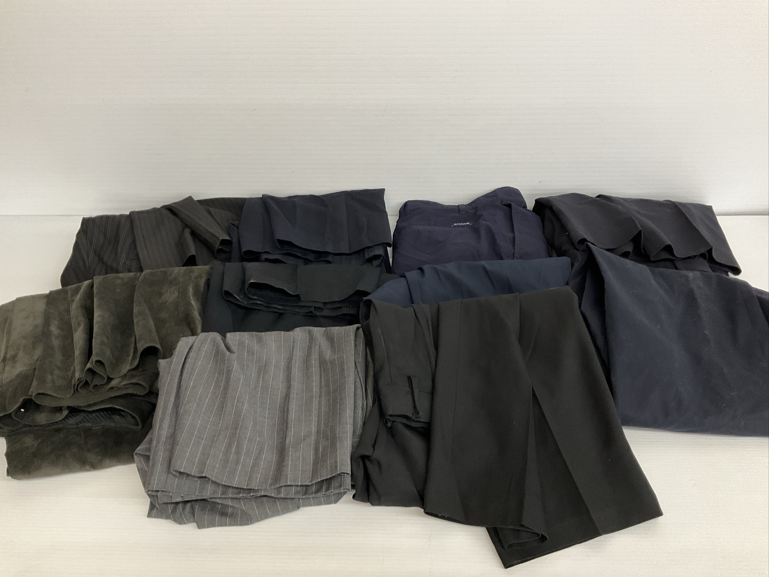 This lot features a collection of men's pants, including dress pants and casual pants. Brands include Joseph & Feiss, Chaps, Croft & Barrow, Dockers Premium, Kenneth Cole Reaction, Nautica and more. Various colors and sizes are included in this group. Please see photos for details.