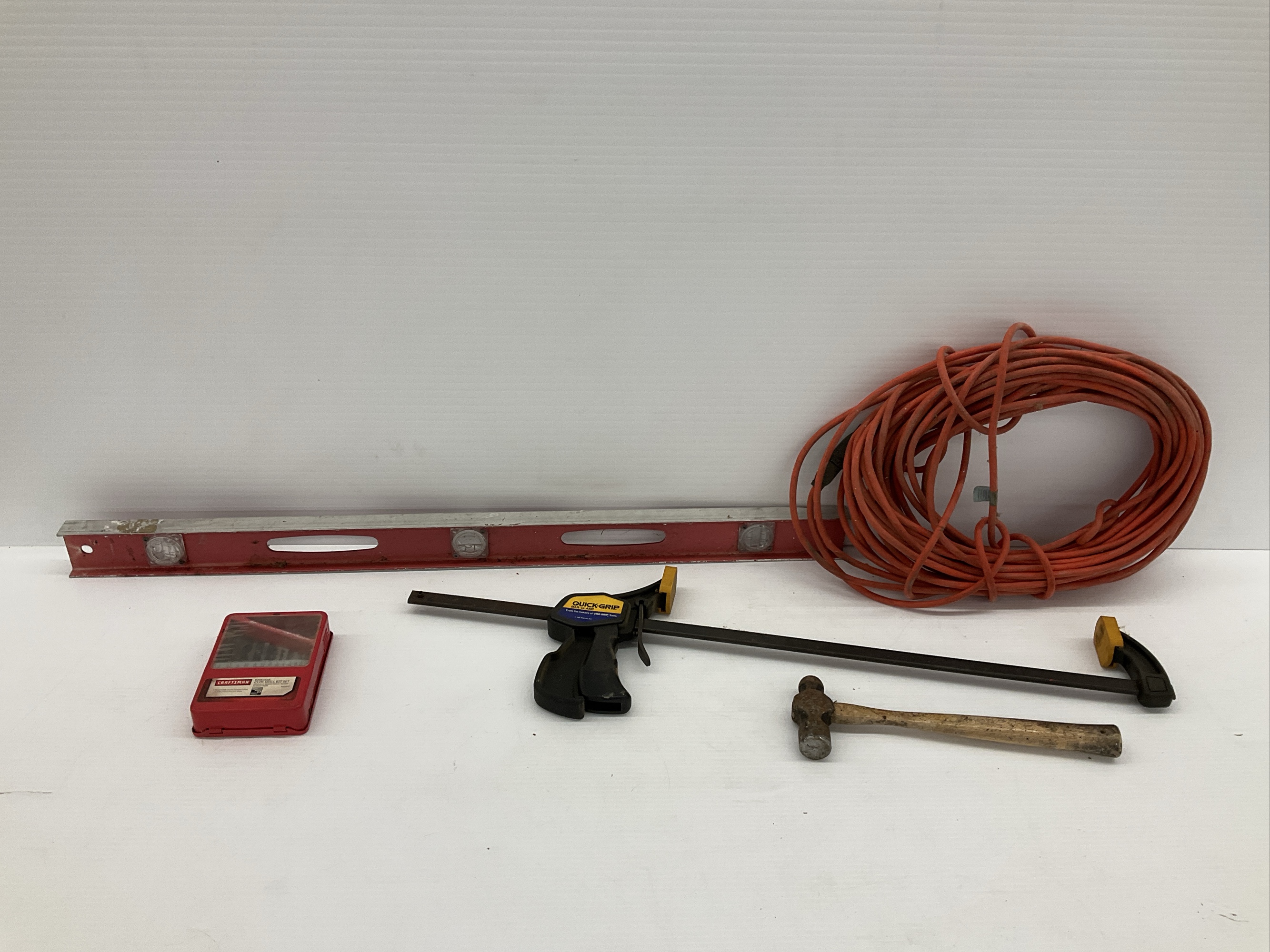 Craftsman Drill Bit Set, Quick-Grip Clamp, Hammer, Level, and Extension Cord