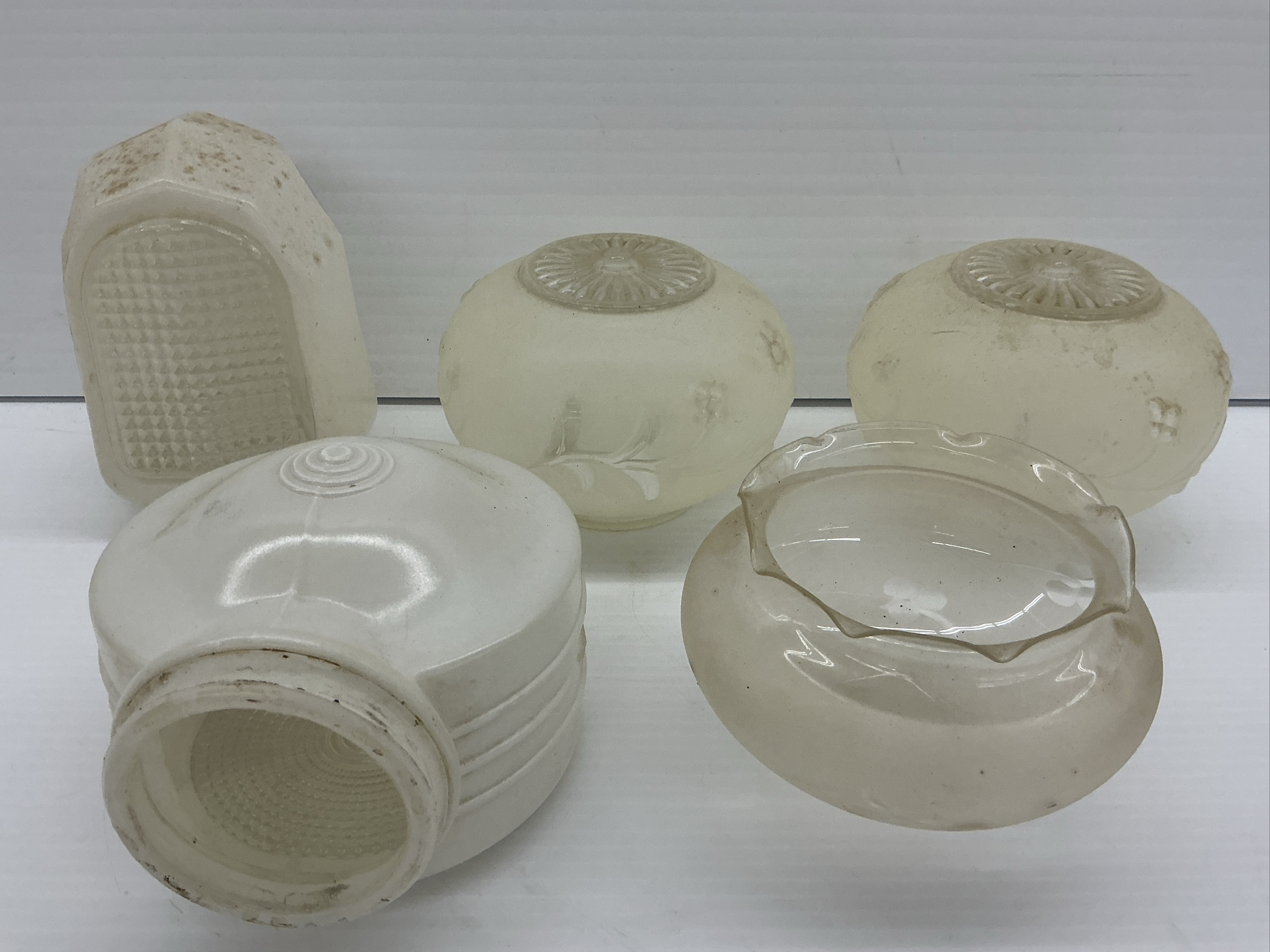 Set of Five Assorted Vintage White Glass Light Fixture Shades