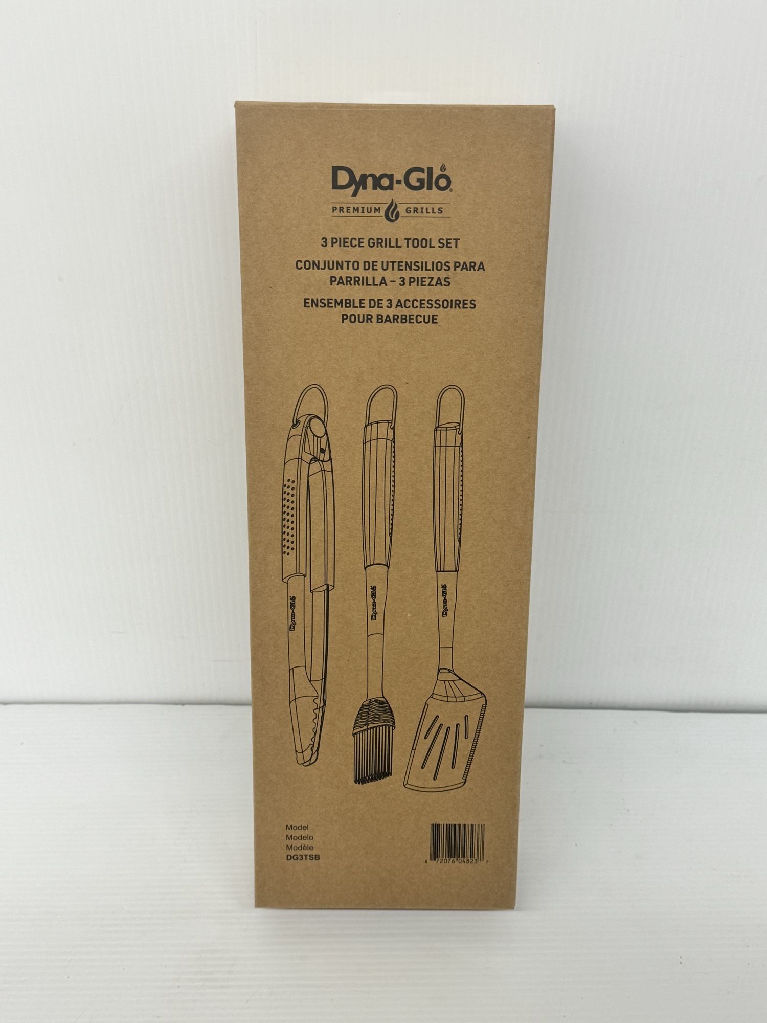 This is a Dyna-Glo Premium Grills 3 piece Grill Tool set. It includes tongs, a spatula and a basting brush.