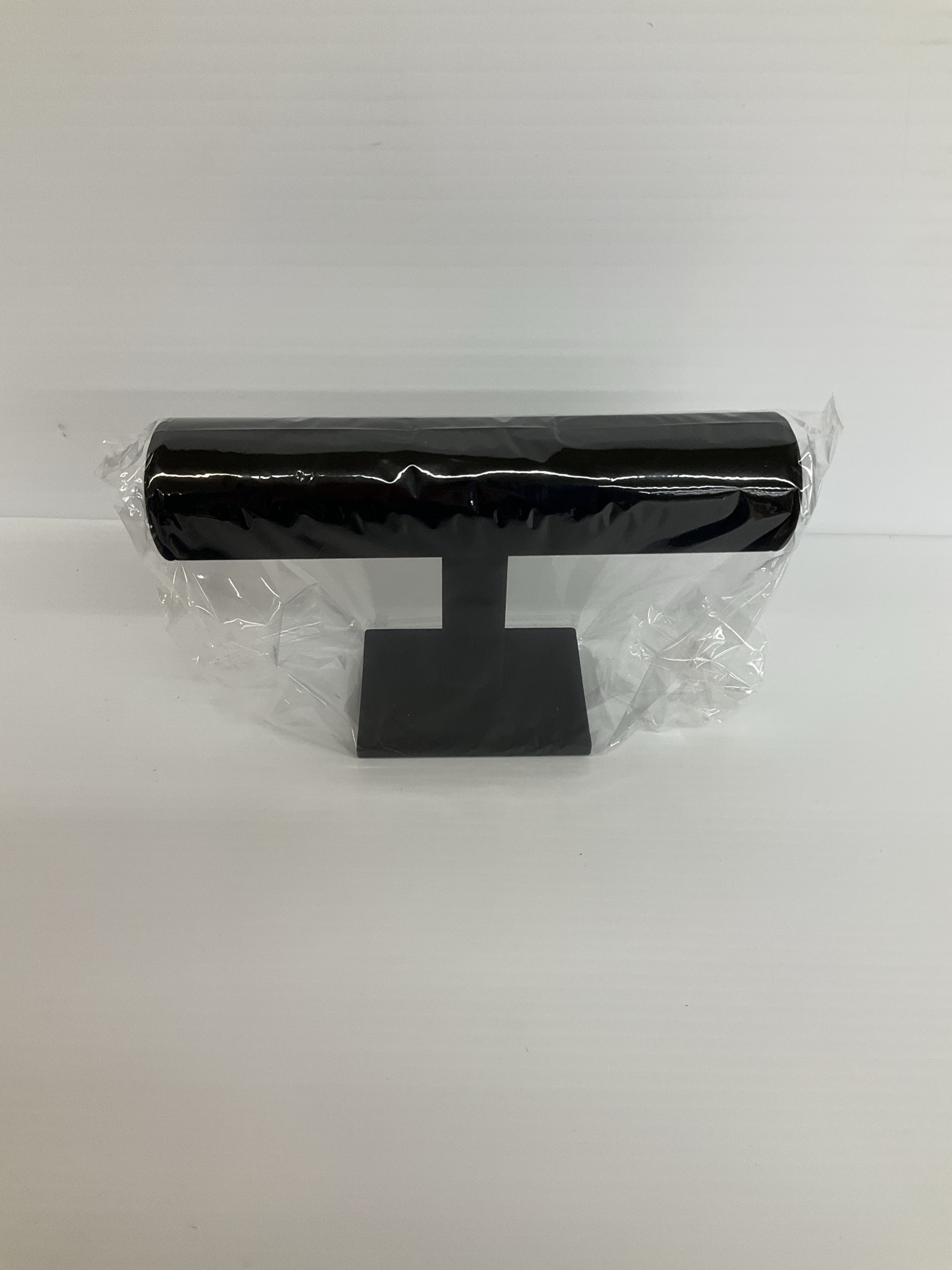 A black velvet jewelry display stand, perfect for displaying bracelets, watches, and other accessories. This stand provides an elegant way to showcase your items. The item is made in China. Model JD141SBR.