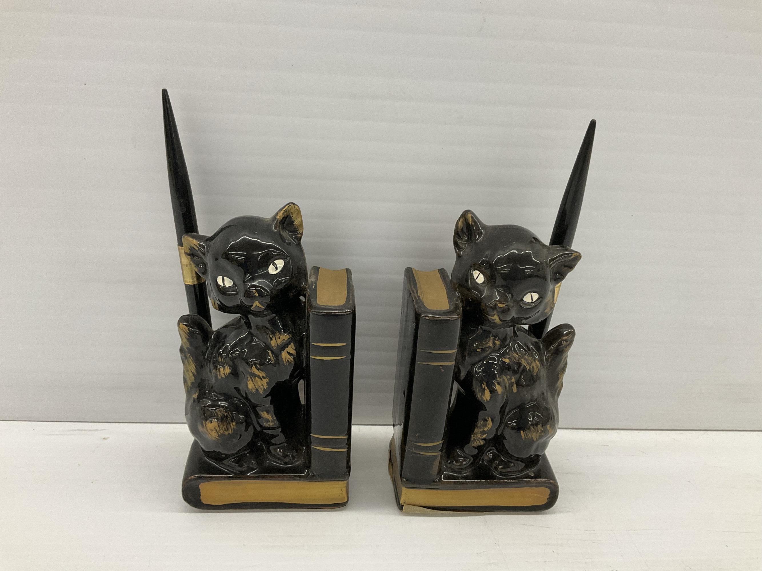 Pair of Vintage Cat Bookends with Pen Holders