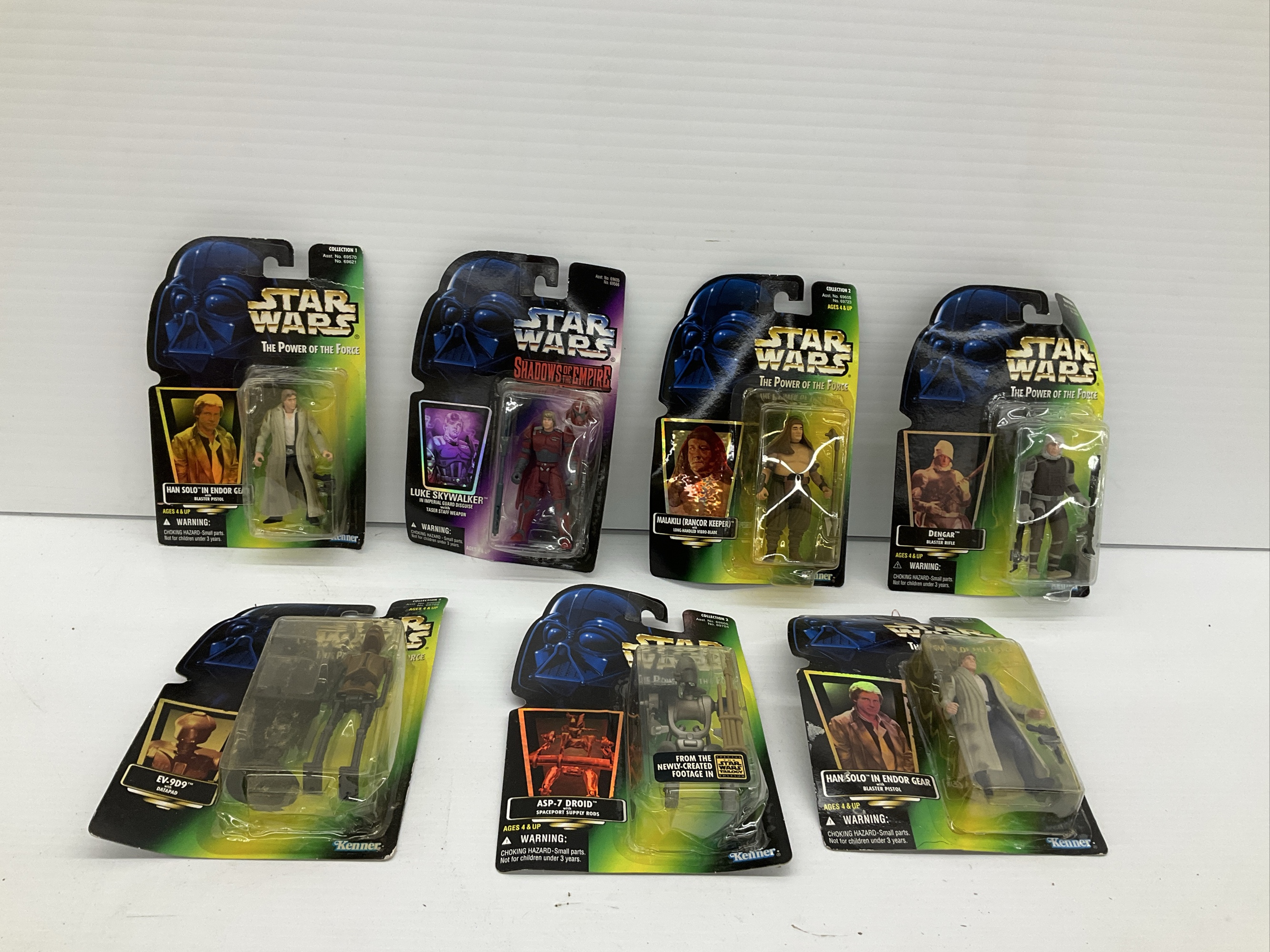 Collection of Star Wars action figures from The Power of the Force and Shadows of the Empire series, including Luke Skywalker, Dengar, and more.