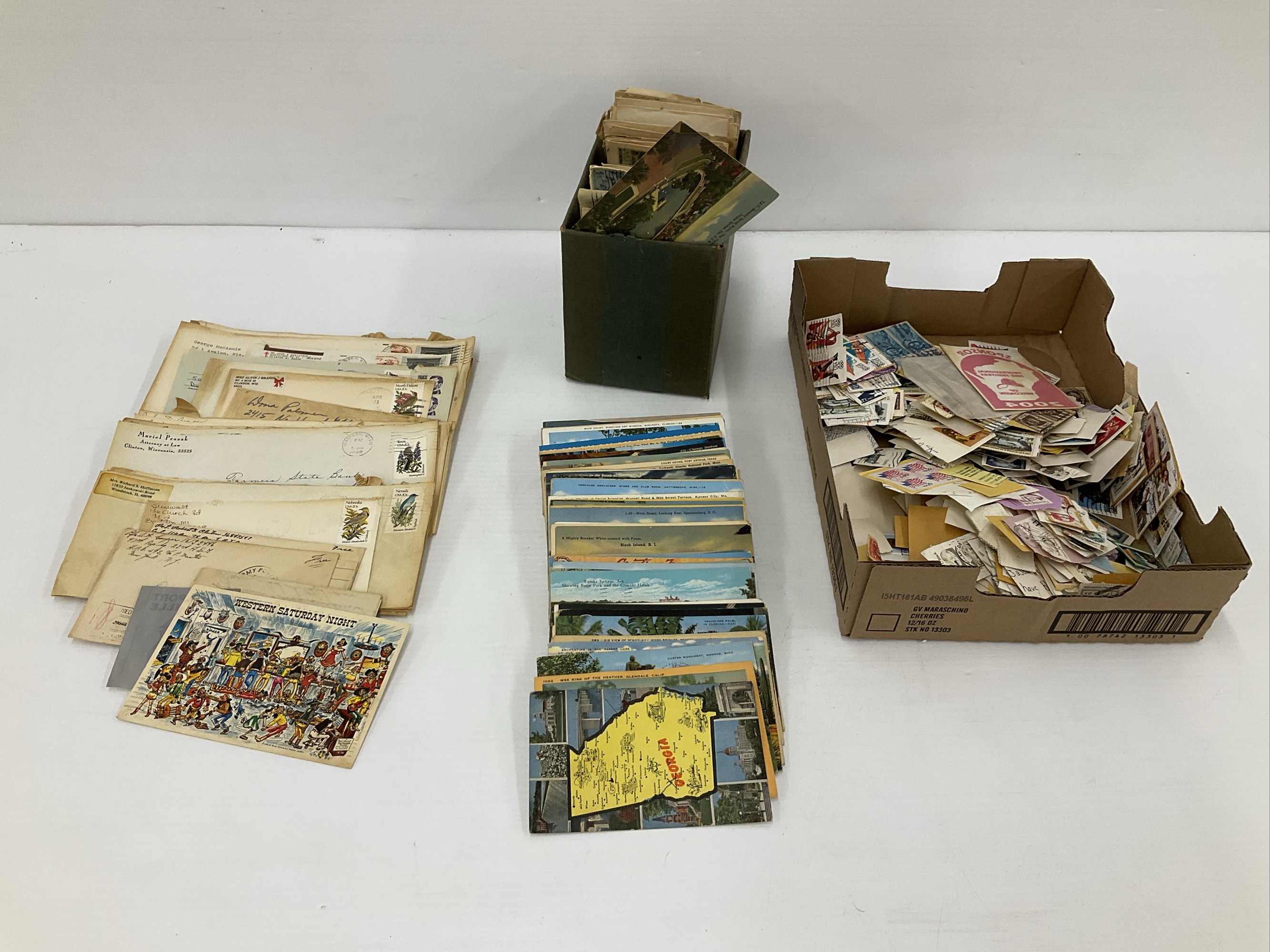 Large Assortment of Postage Stamps, Postcards, and Envelopes
