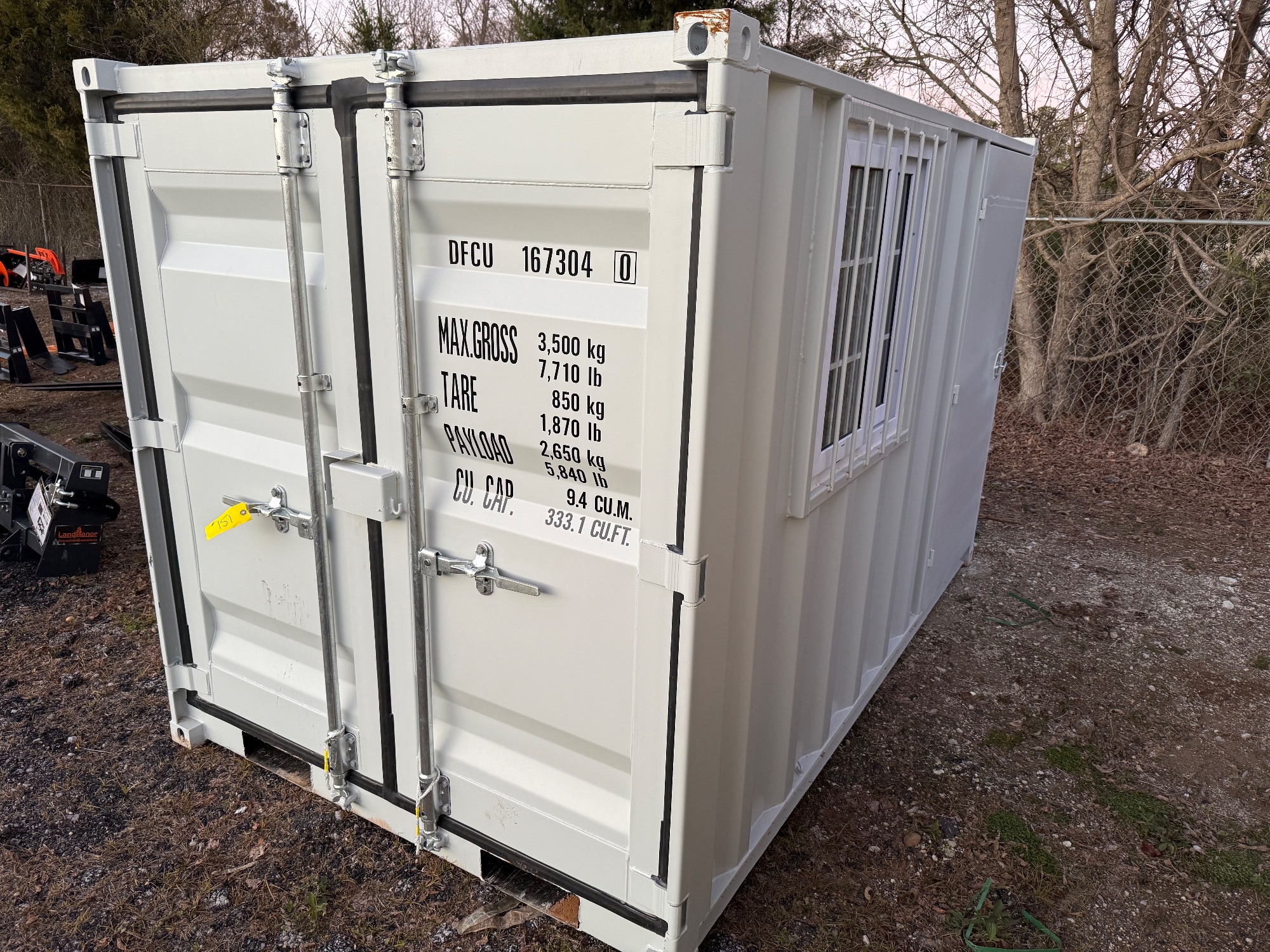 2025 "One Use" 7ft Steel Office Container, SN# DFCU1673040, 6ft Tall, Side Door, Window and Double Container Doors