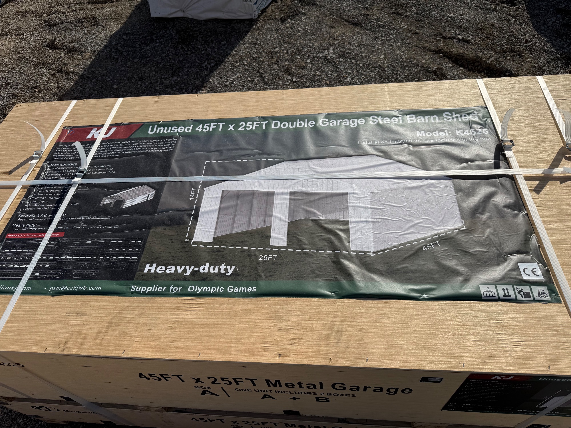2025 KJ Unused K4525 45ft x 25ft Double Garage Steel Barn Shed, SN# KJ25015685
