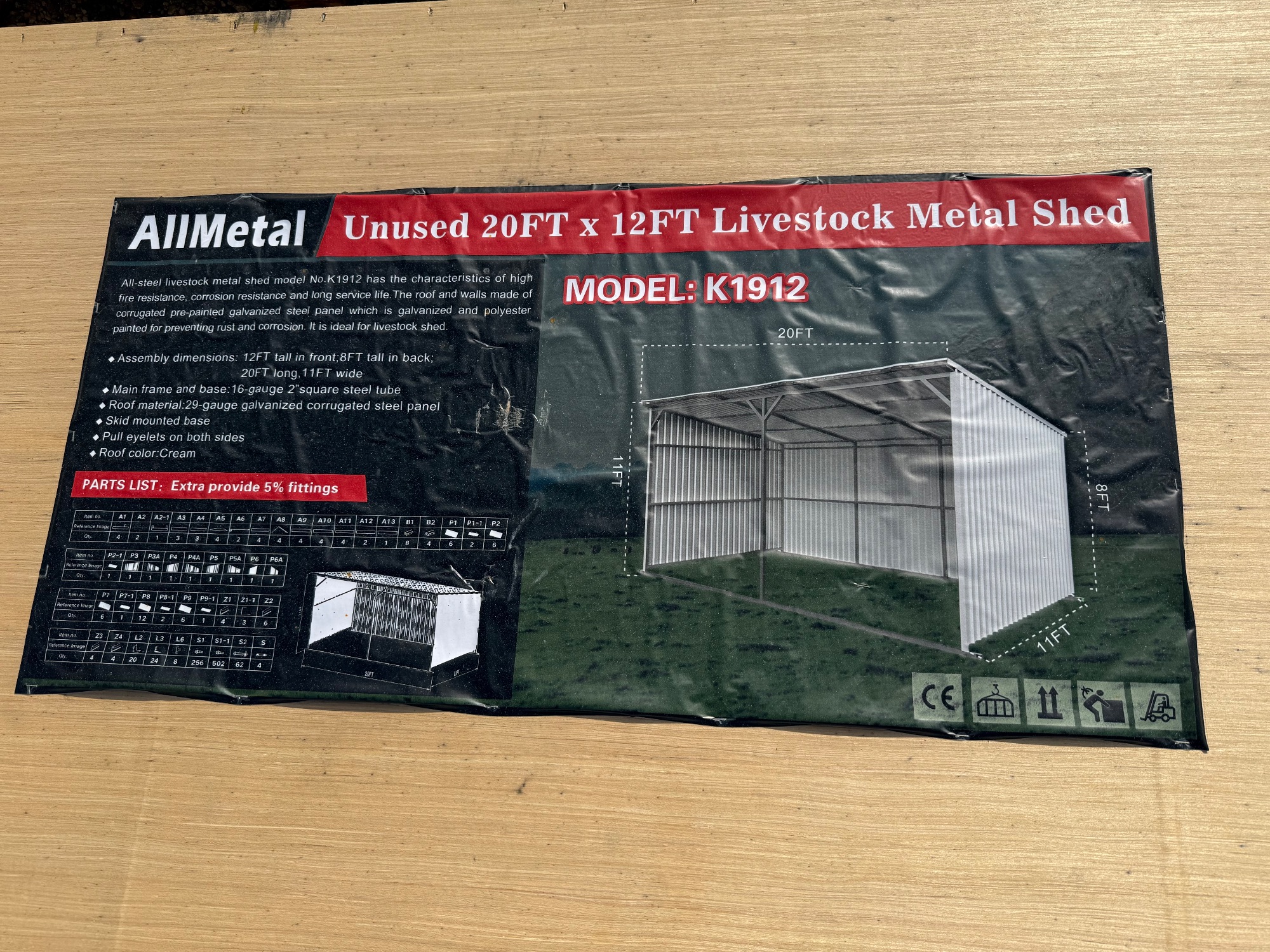 2025 AllMetal Unused K1912 20ft x 12ft Livestock Metal Shed