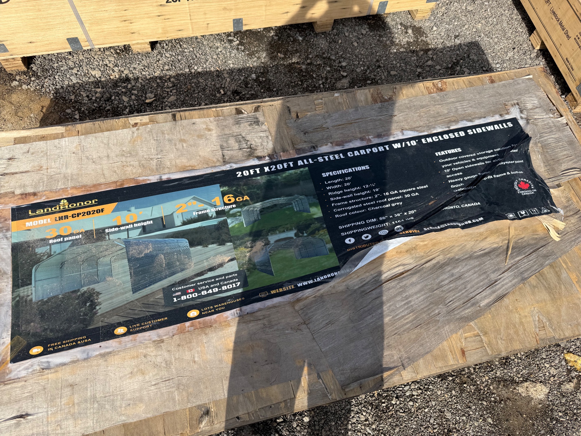 2025 Landhonor Unused LHR-CP2020F 20ft x 20ft All-Steel Carport with 10ft Enclosed Sidewalls, SN# N/A