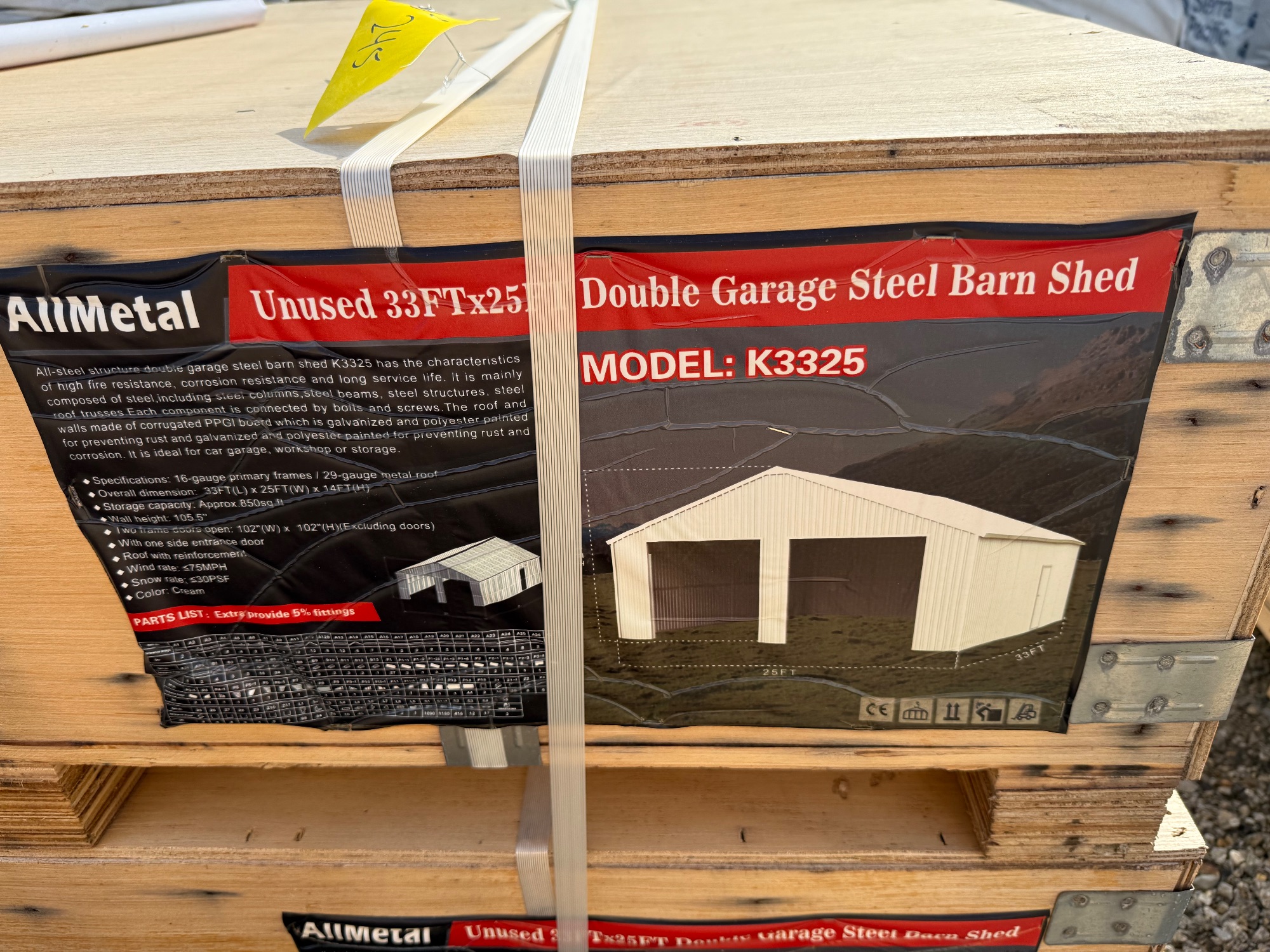 2025 AllMetal Unused K3325 33ft x 25ft Double Garage Steel Barn Shed, SN# AM2502816