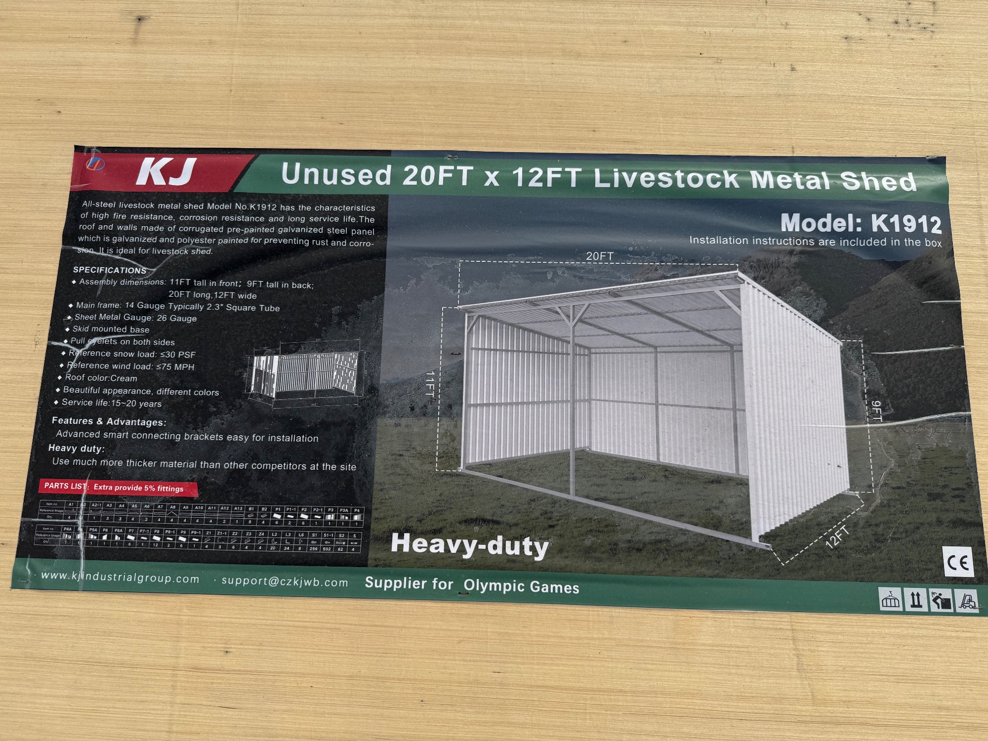 2025 KJ Unused K1912 20ft x 12ft Livestock Metal Shed, SN# KJ25015730