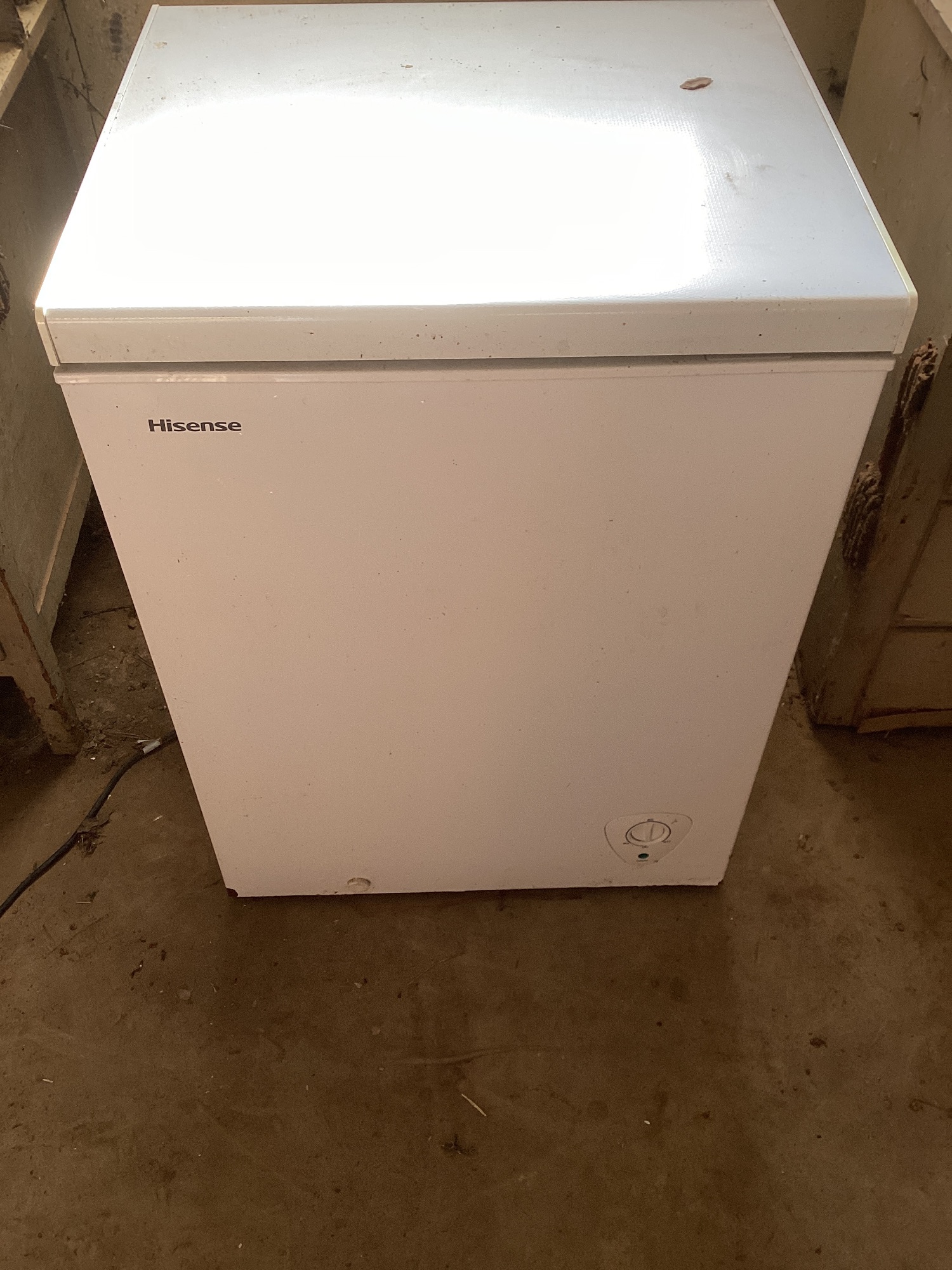 Hisense Chest Freezer, Model WFC050M6XWD. The freezer needs to be cleaned, but it works.