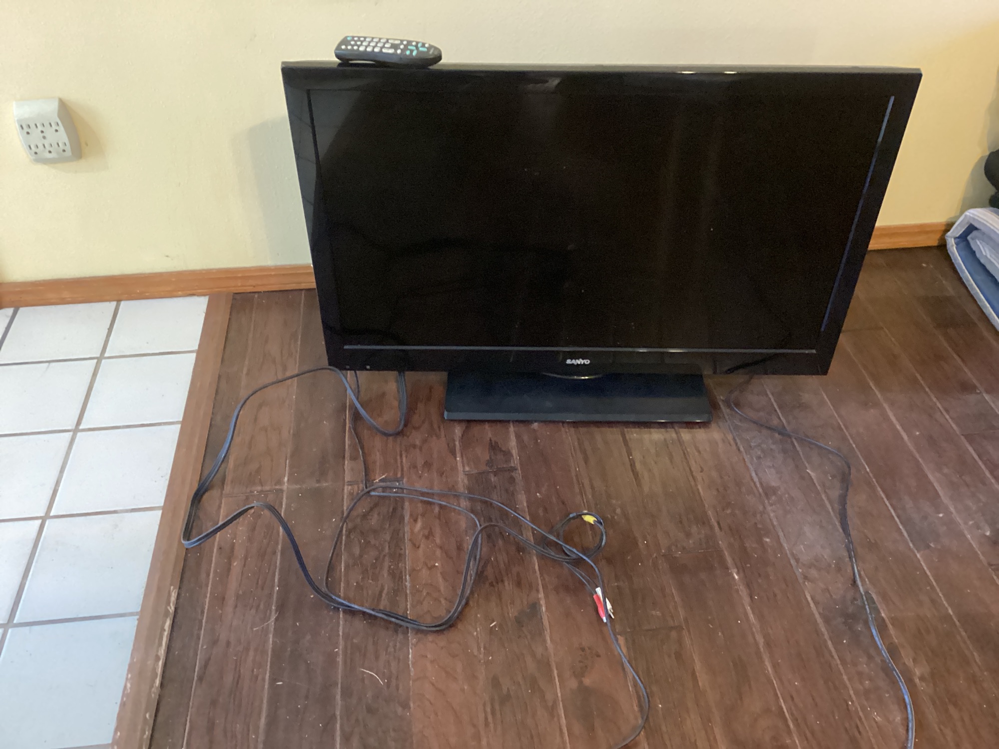 Sanyo flat panel television, model DP39842. Manufactured November 2012. Includes remote control and power cord.
