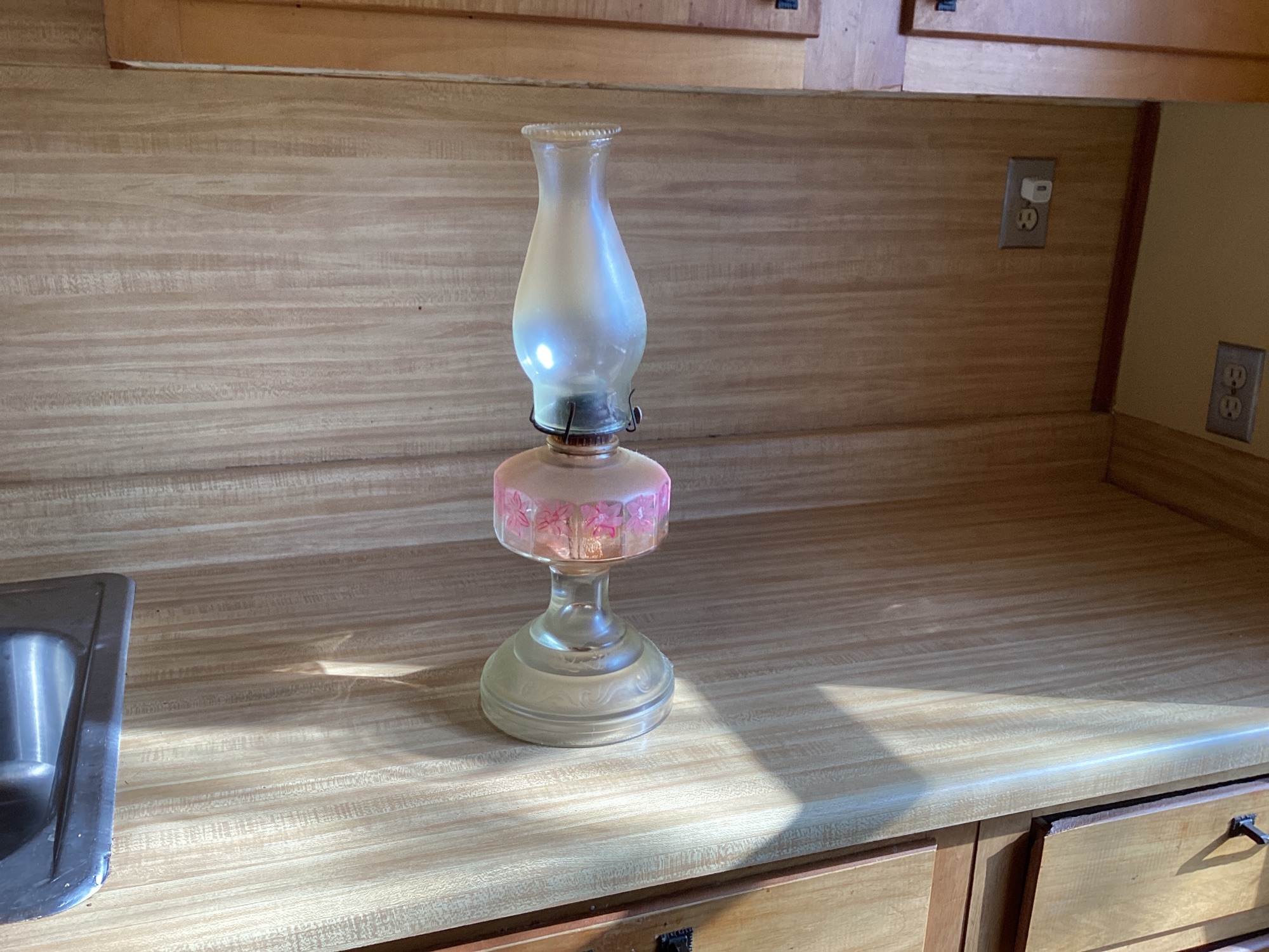 Vintage Clear Glass Oil Lamp with Pink Floral Design