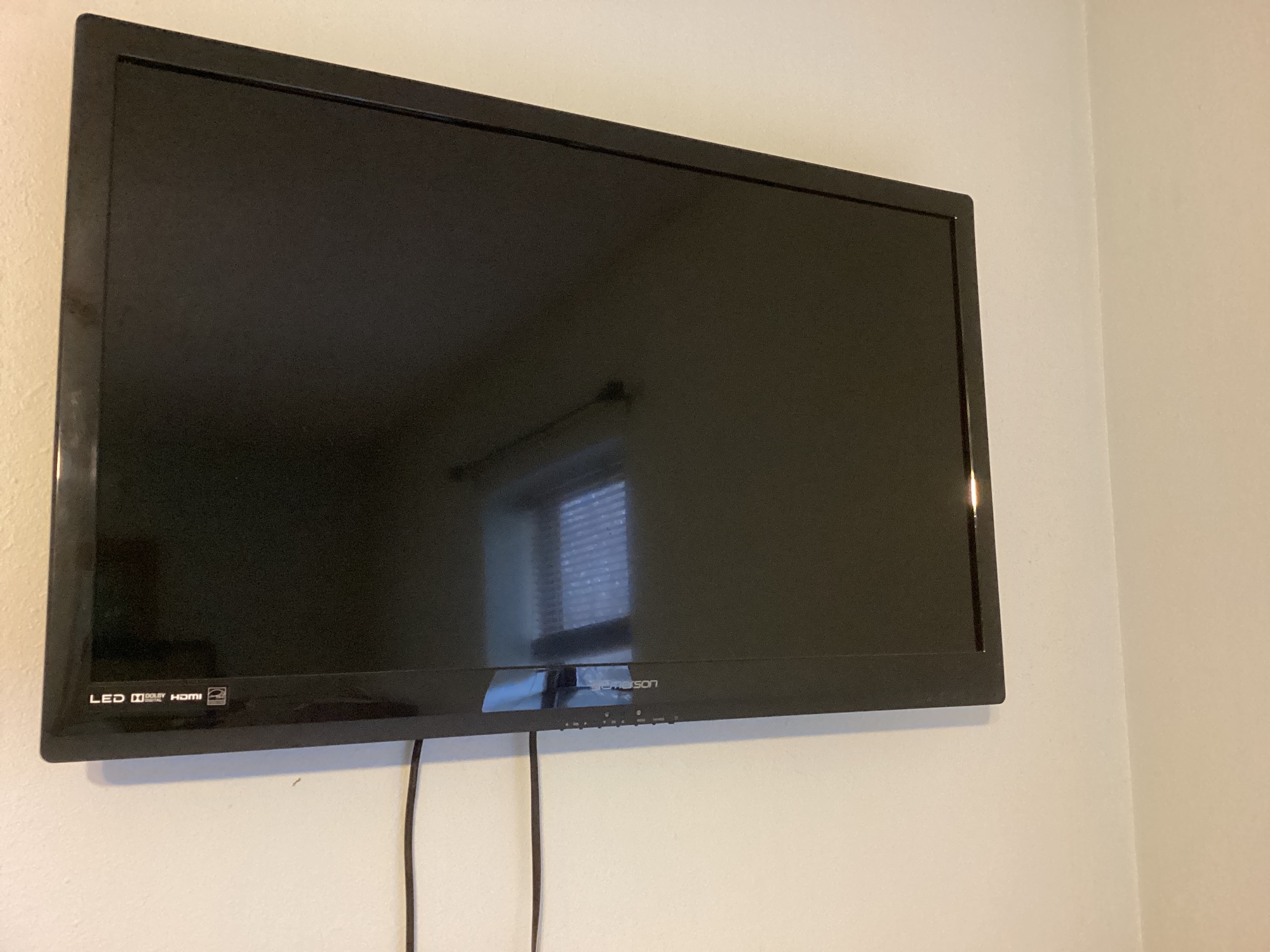 Emerson LED television with HDMI, wall-mounted.