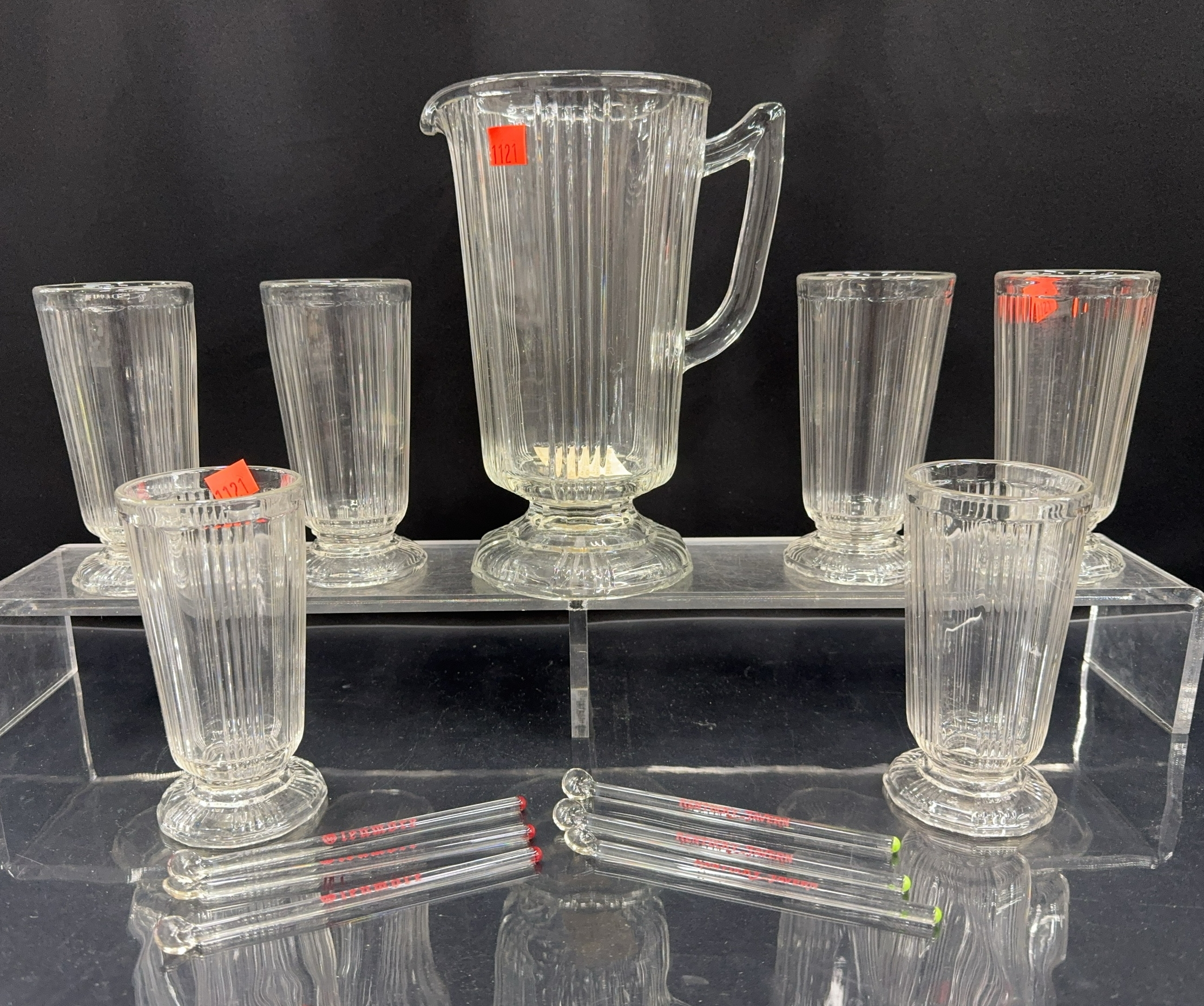 Vintage Footed Pitcher and 6 Glasses, Pitcher 9.5"