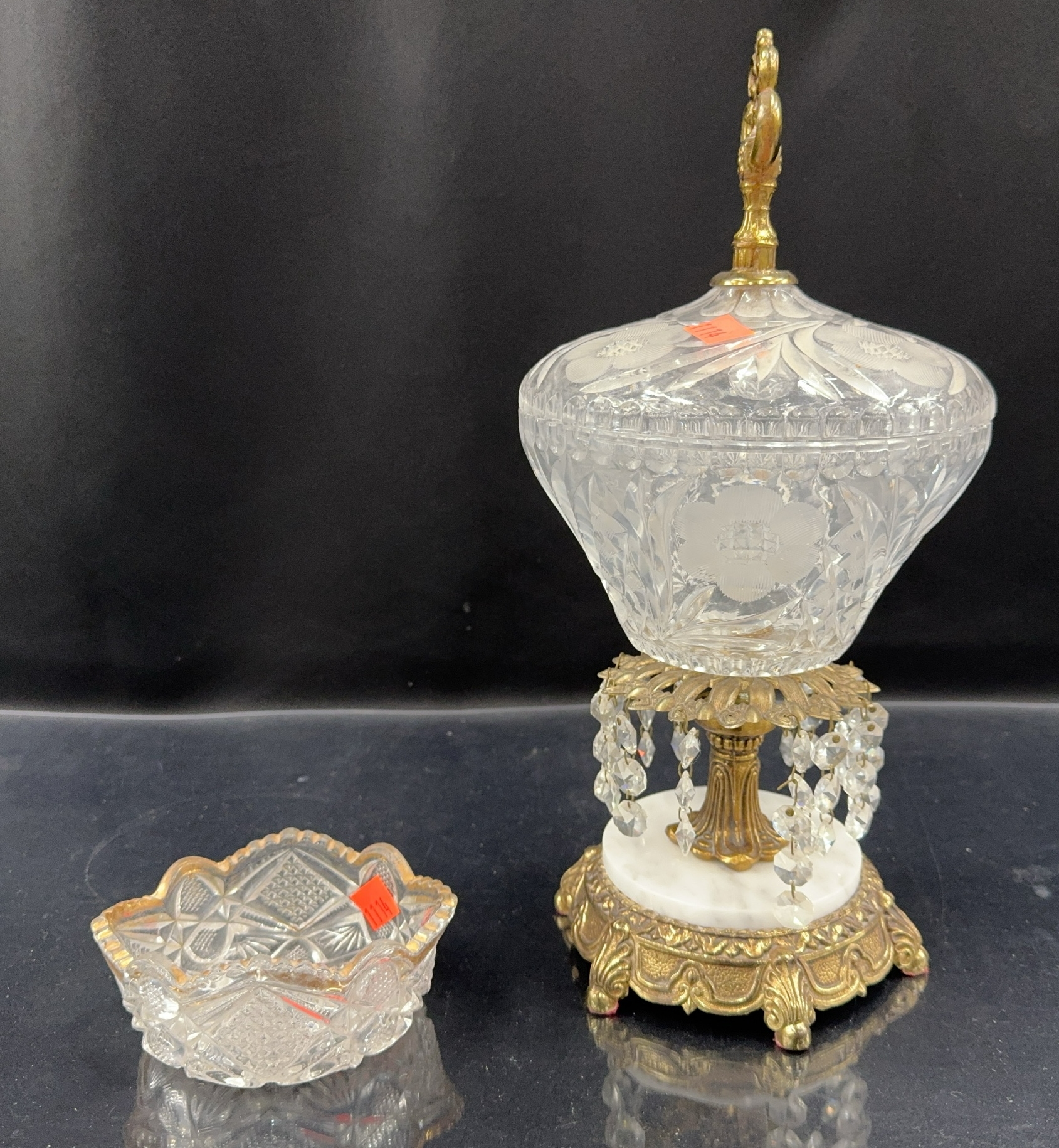 Vintage Crystal, Brass and Mineral Candy Dish, and Gold Rimmed Bowl, Overall 13.5"