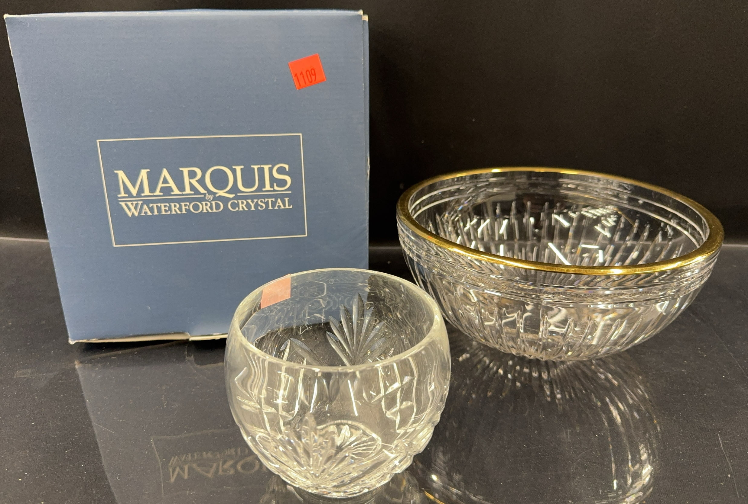 Waterford Bowl, and Marquis Gold Rimmed Bowl Largest 9x4"
