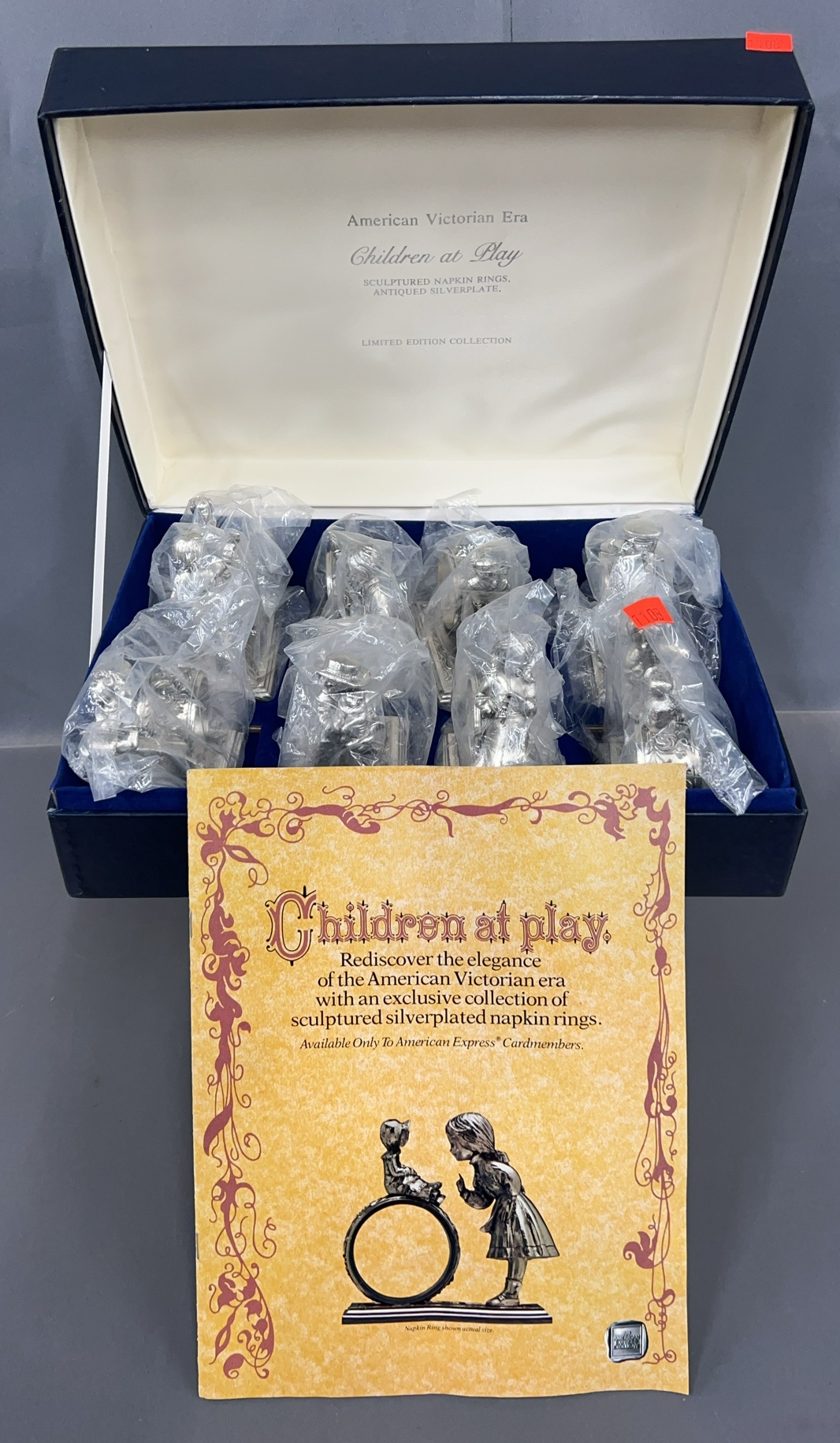 American Victorian Era Children at Play Silver Plated Napkin Ring Set In Case