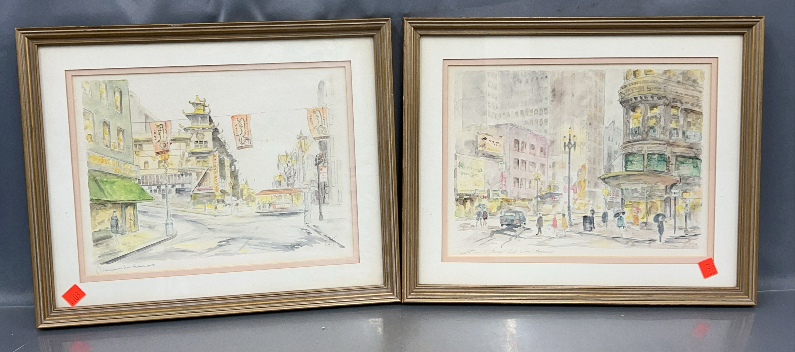 2 Dated 1968 Signed Watercolor Style Art In Frames 16x13", "Market Street in San Francisco" and Other Ineligible