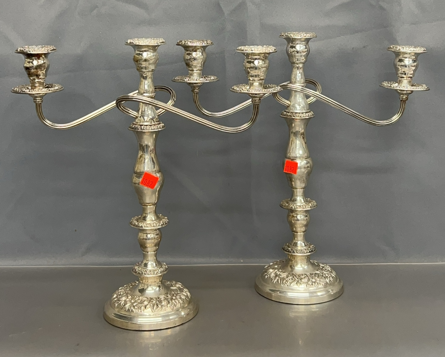 Pair of S. Kirk and Son Floral Repousse Sterling Weighted Candelabras 14" Wide x 14" Tall