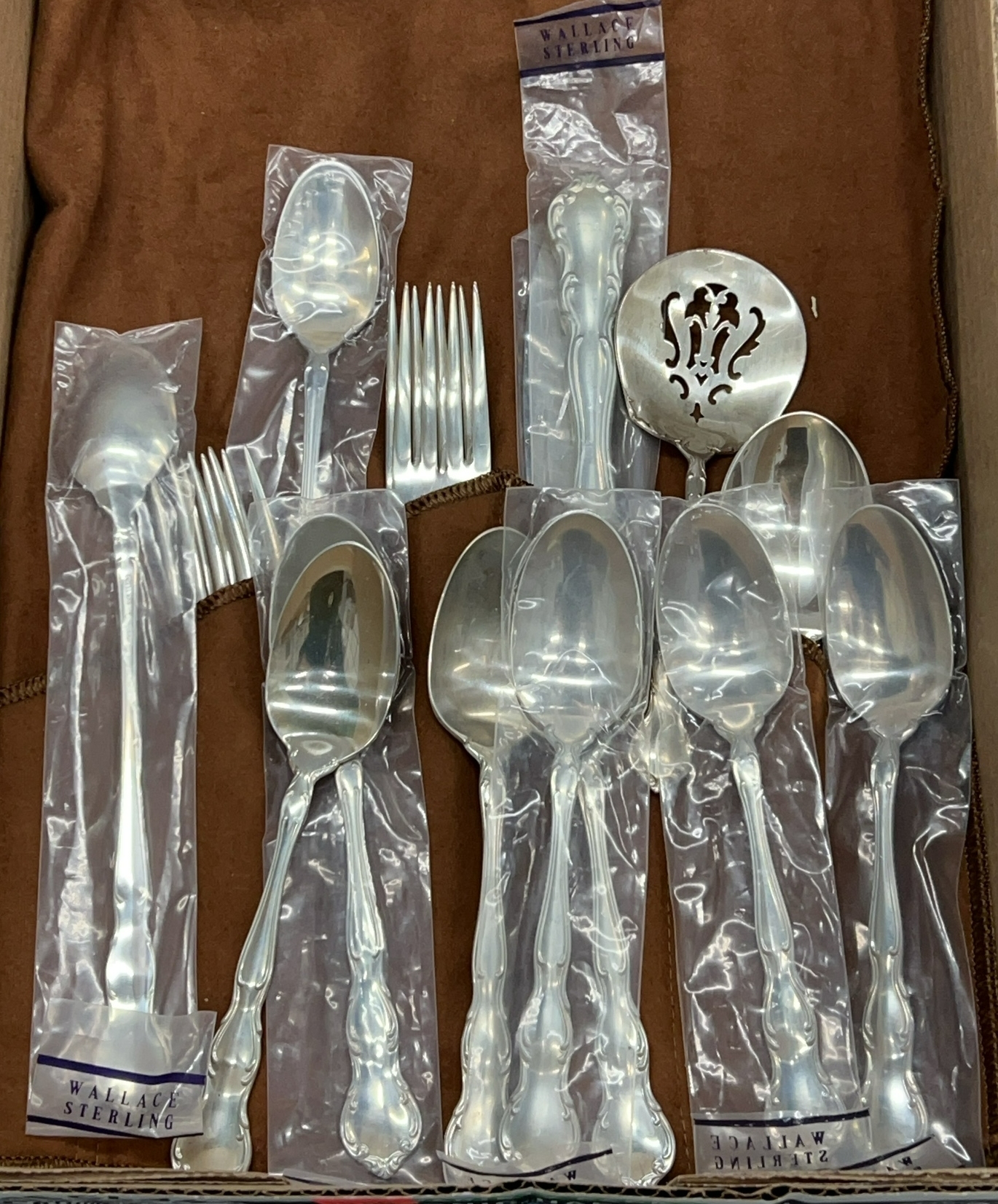 18pcs "My Love" by Wallace Sterling Flatware and Slotted Spoon