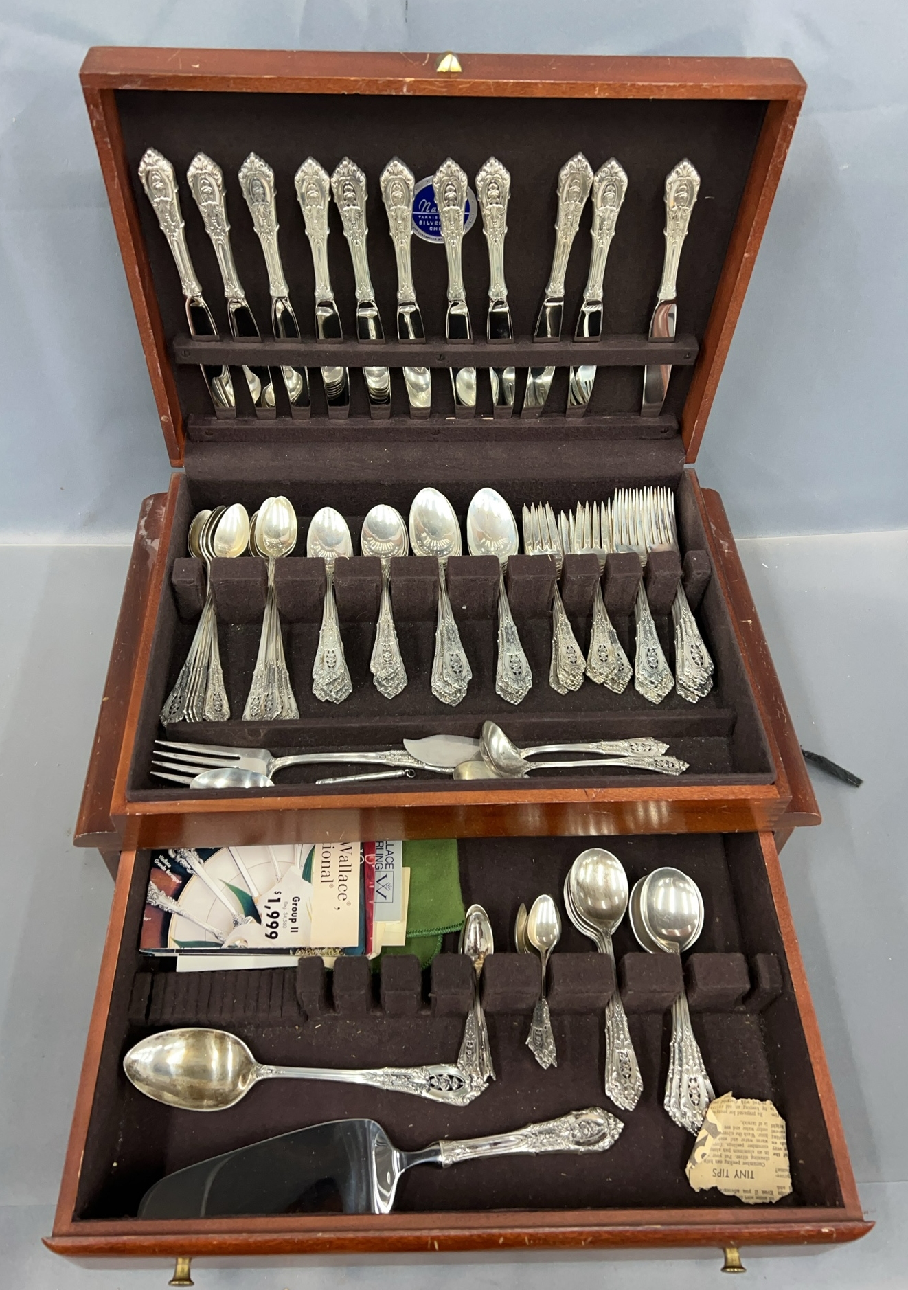 Set of Wallace "Rose Point" Sterling Silver Flatware In Pieces 110 Total In Case