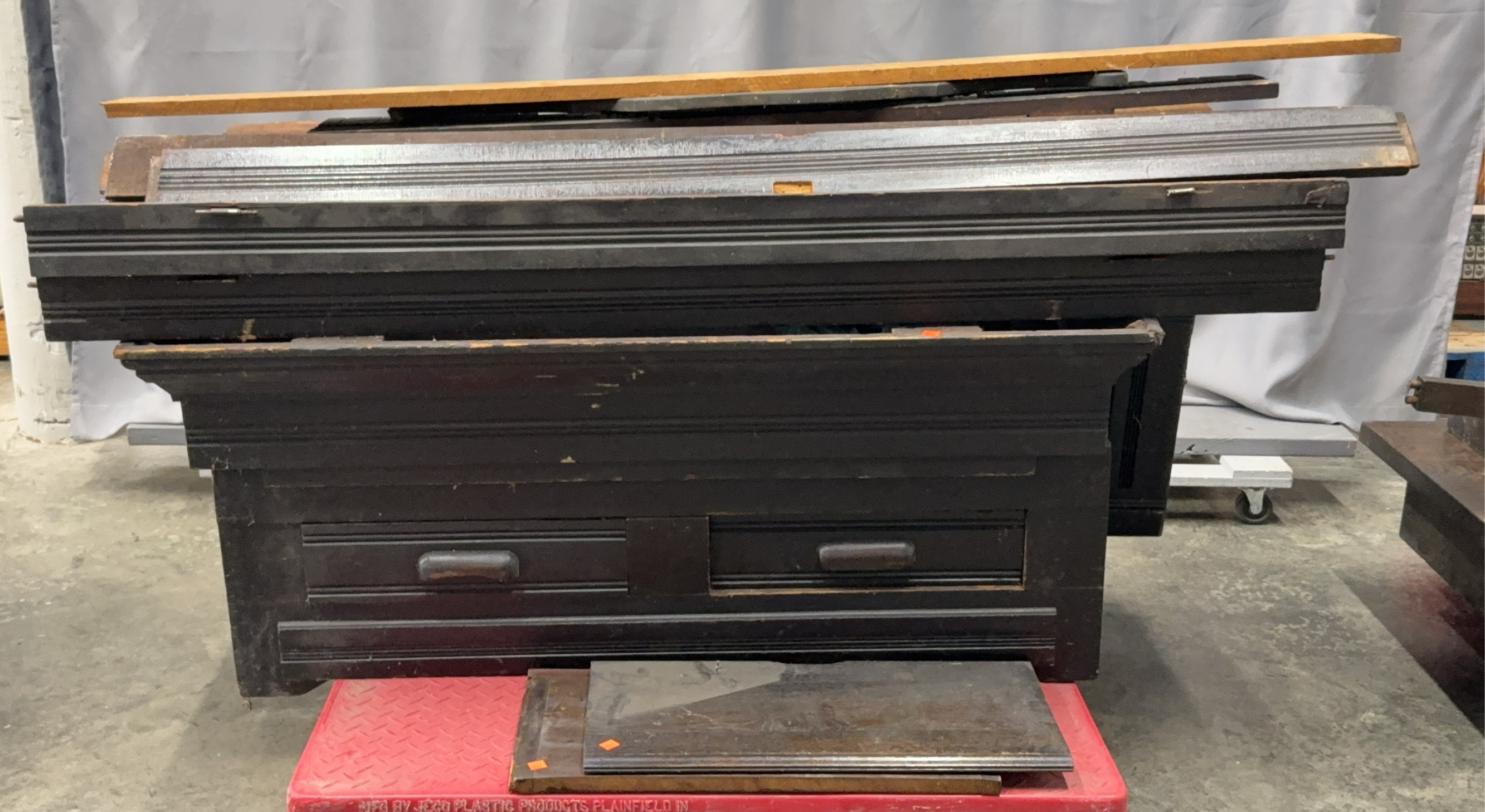 Antique Drop Down Wardrobe in Parts on Skid, (Skid Not Included) 48" Wide 21" Depth Parts Could Be Missing