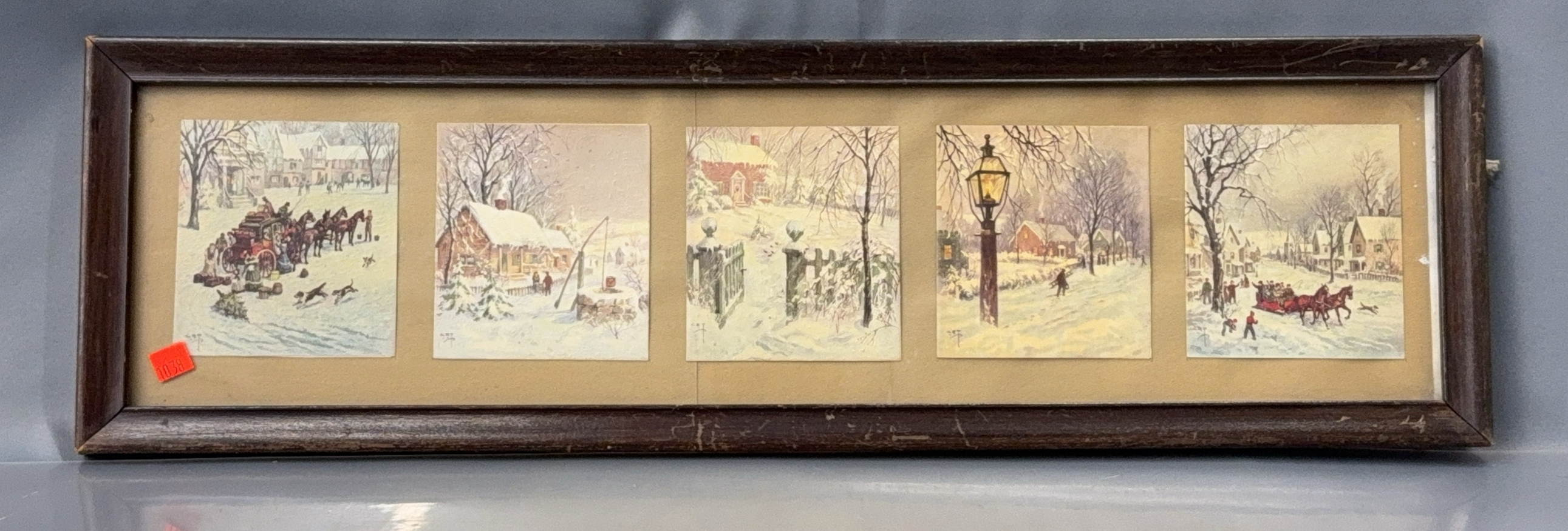 5 Framed Winter Scene Note Cards, Frame is 31x9"