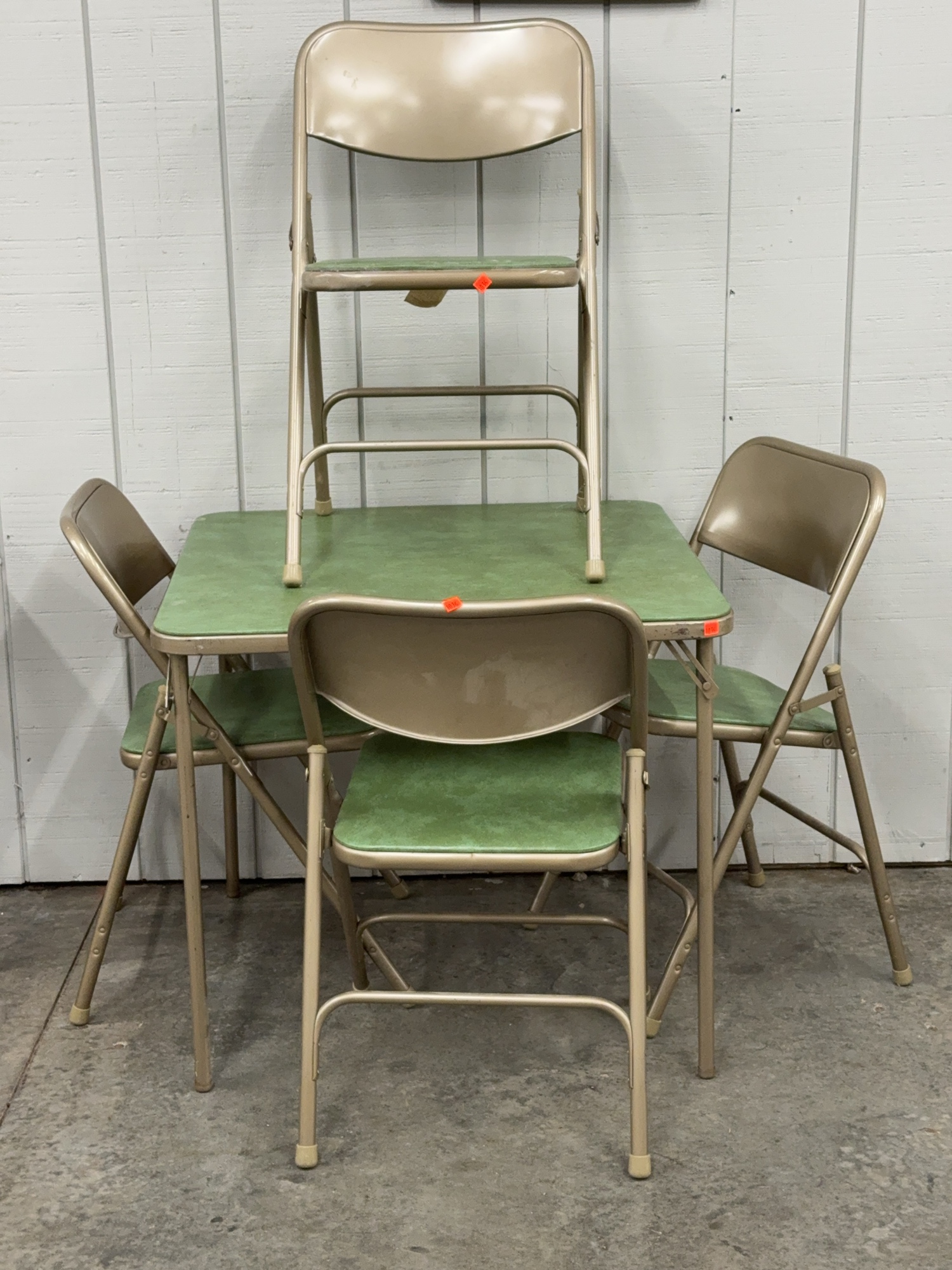 Vintage Green Samsonite Folding Card Table and 4 Chairs