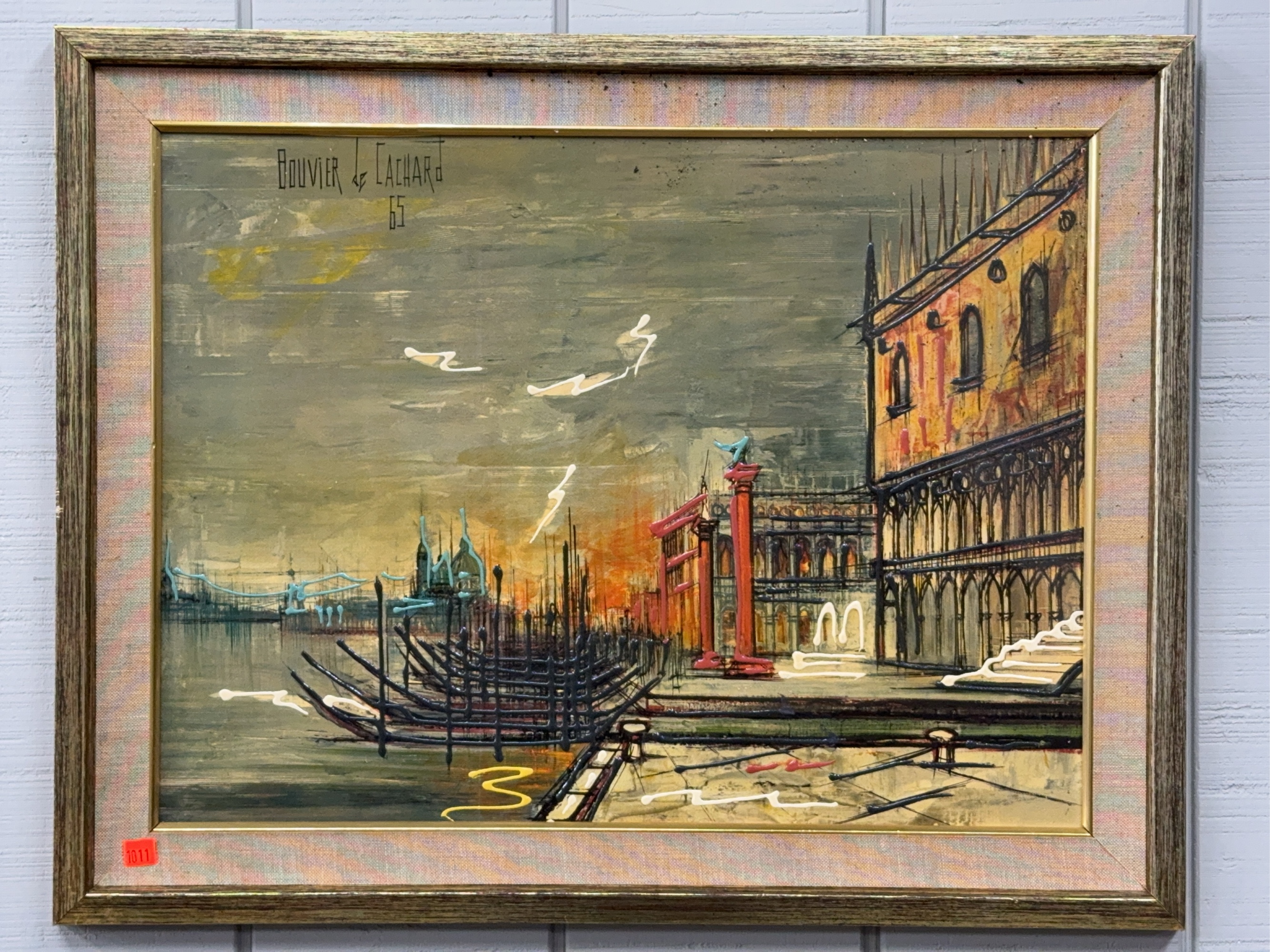 Mid Century Modern Textured Print On Board by Bouvier de Cachard, Has Some Flaws and Wear to Frame