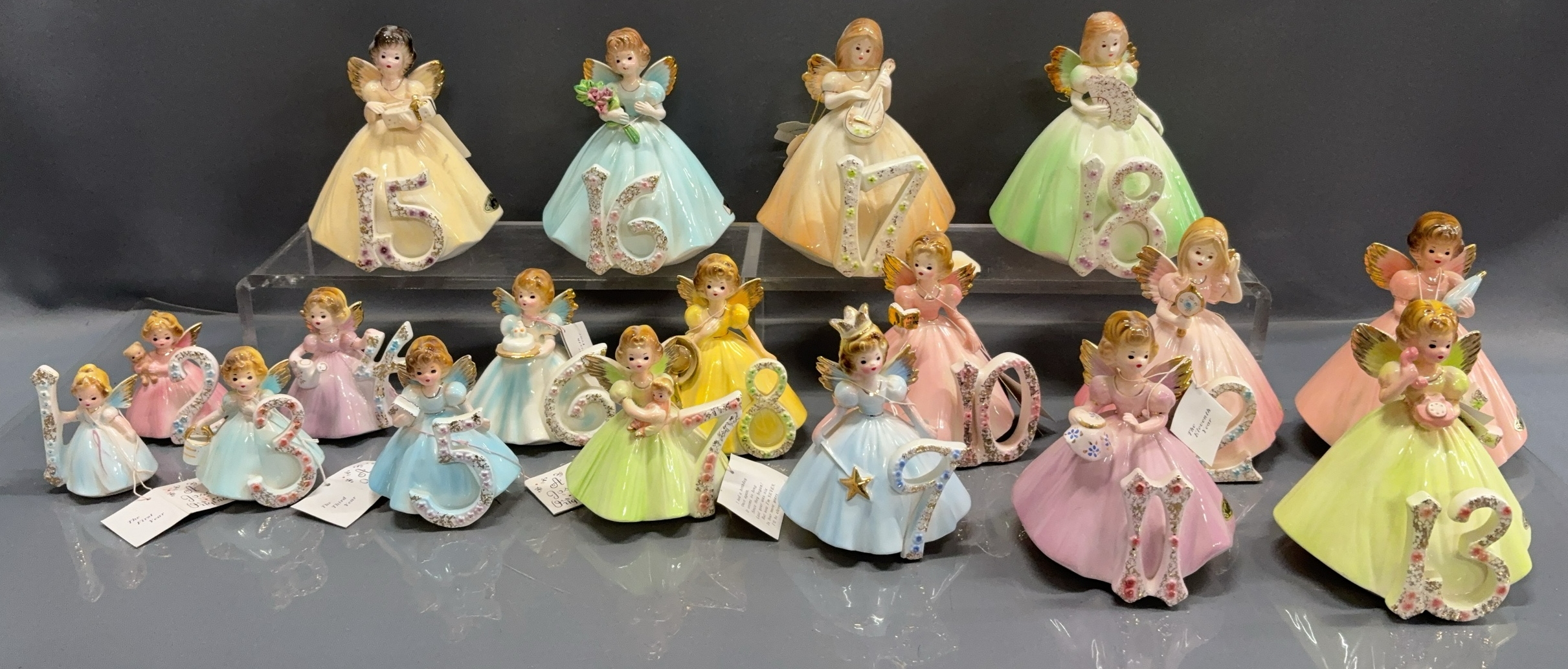 18 Josef Birthday Angel Figurines - 7" of tallest - Number 1 thru 18 - 1 is chipped