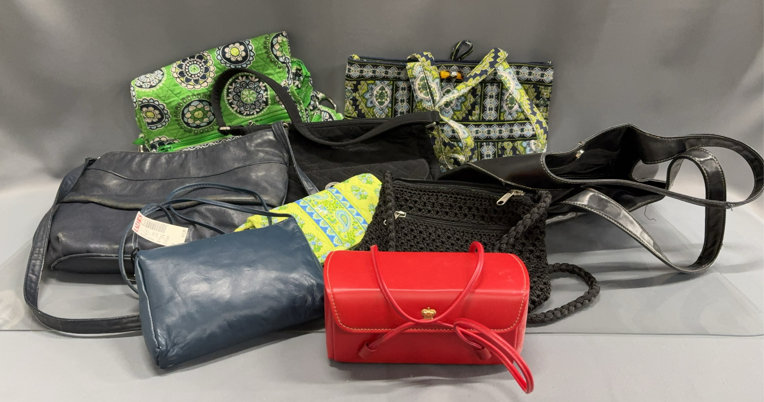 5 Ladies Handbags - Vera Bradley and Others - 13" x 9" - 20" drop of handle - some wear