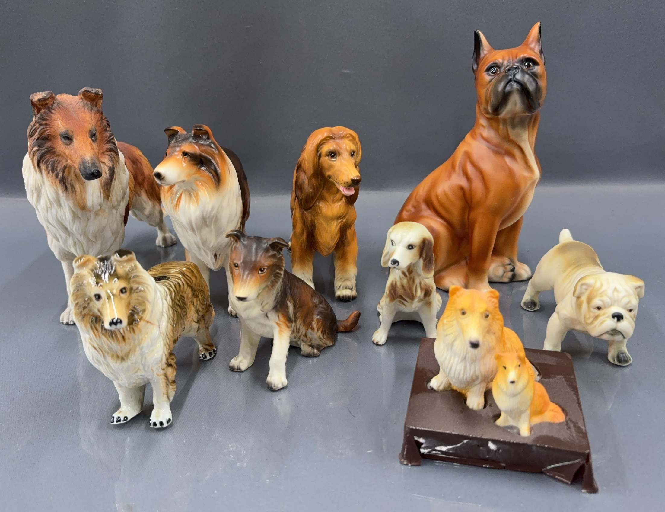 9 Various Dog Figurines, Japan, Inarco, Andrea, Taiwan and Others, Tallest Boxer 7"