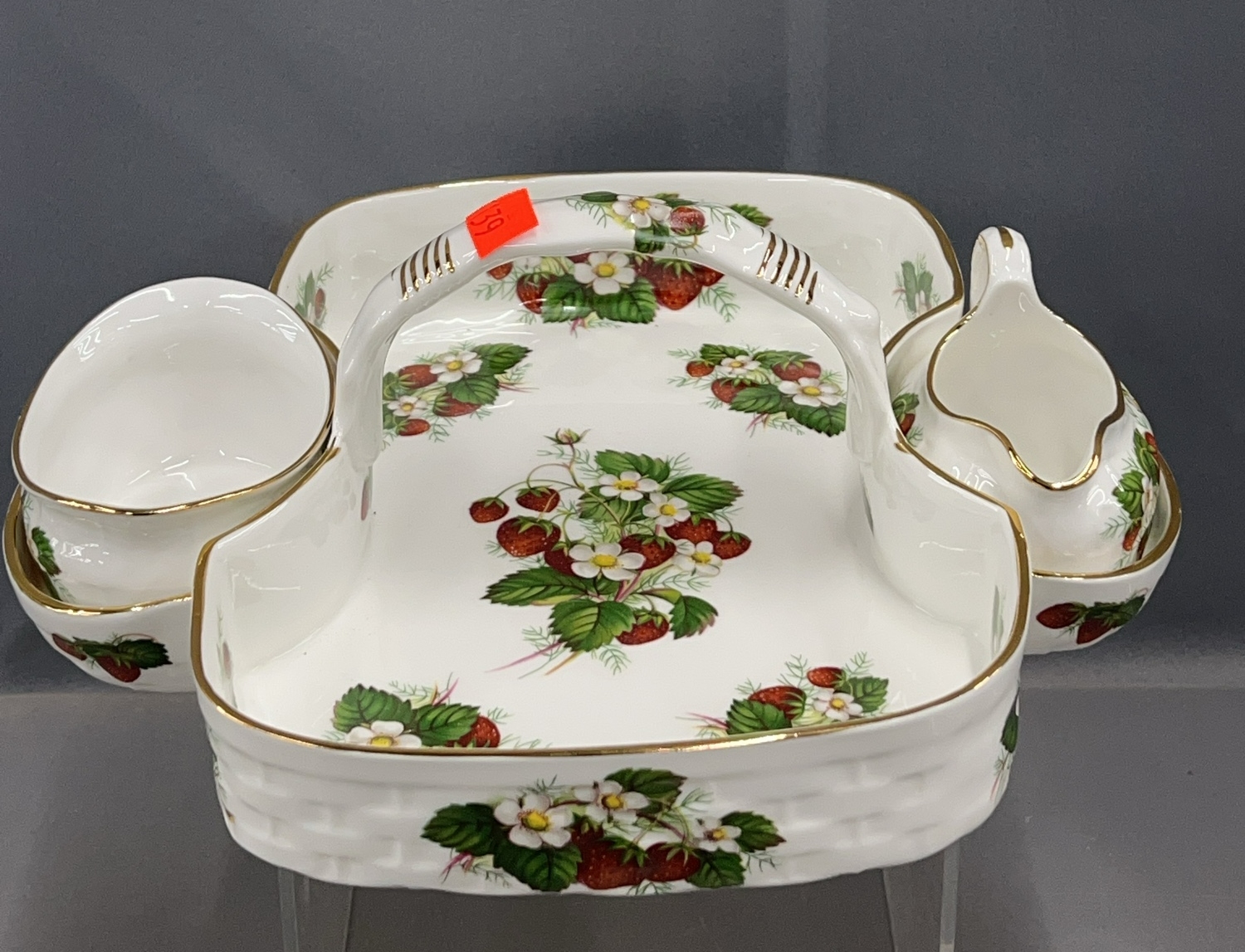 Hammersley England Strawberry Basket Tray with Cream and Sugar 10x11x4.5"