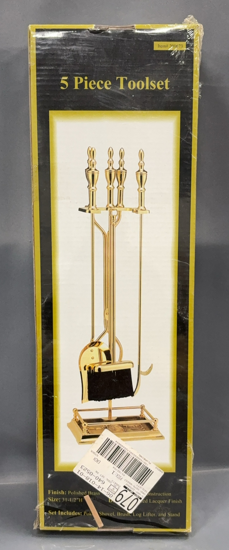 5 Piece Brass Tone Fireplace Tool Set - 31.5" T when assembled